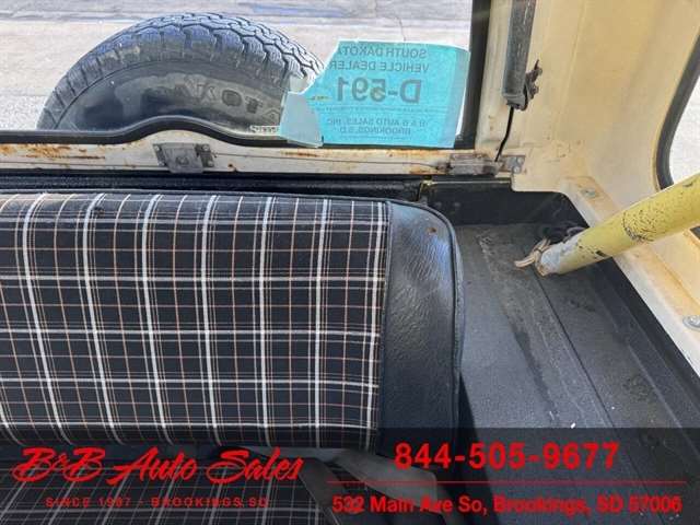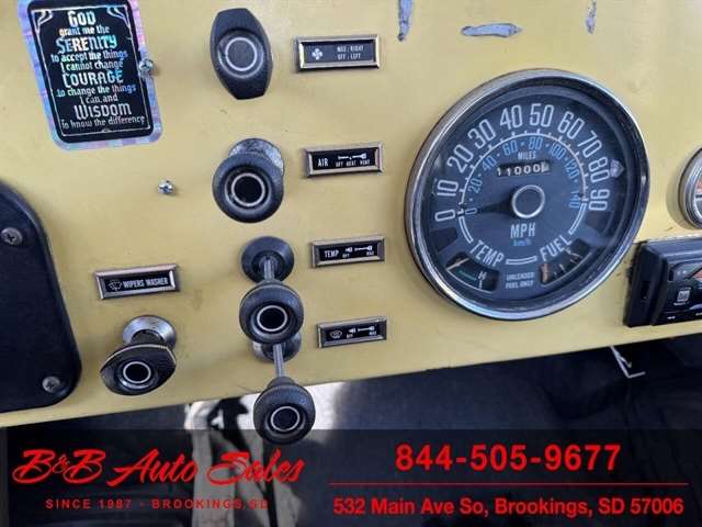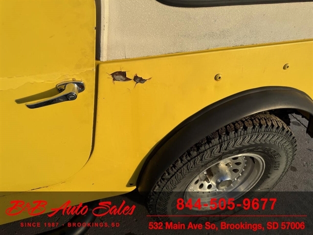 *304 V8*AUTOMATIC*HARD TOPMECHANICAL- This CJ7 has been thru our inspection. The horn does not work. *NEW FUEL PUMP*NEW BRAKE LINES, ROTOR,PADS,CALIPER*NEW SPEEDOMETER CLUSTER*NEW LIGHT SWITCHEXTERIOR- The body is in good shape. It has some small rust bubbles and scratches but a very solid CJ. See the video for an up close inspection. Text Dirk at 605-695-7391 for running and driving video`sINTERIOR- The interior is in good shape.DIRK`S COMMENTS- With 38 years of experience I will give you my opinion of the CJ7. It is a great running and driving Cj. These are fun to cruise around with the top off but with the 4 wd still can offroad or drive in the winter. I have one with a plow on and works great for moving snow. UNDERNEATH- The underneath is solid . History- A Jeep from western South Dakota. TEST DRIVE- We personally test drive our vehicles so we know what they drive like. I have drove this one 10 miles and it drives good.Located in White,SDBUY WITH CONFIDENCE as this 1978 Jeep CJ7 has gone thru inspection and test drive. We personally work and drive these ourselves so can answer any questions you may have. We show you any issues with over 100 pictures and videos of a walk around, running and driving.VALUE- We price our vehicles to market value and try to be one of the best prices of vehicles in comparable condition. Our goal is to give you a good buy on a vehicle you are going to have fun with and enjoy. We do have a document fee but only $50 which is lower than most other dealers.LIKE IT OR RETURN IT- As being in business for 37 years we do not want to sell anybody a vehicle they do not want. As many of our vehicles are sold site unseen we will take the vehicle back and give a refund minus shipping and a restocking fee. You are responsible for the shipping both ways and a $1000 restocking fee. You have 3 days to notify us you are not happy with the vehicle and we will start the return process. Ask for more details.VIDEOS- Call, text or email for videos of driving the vehicle and of the engine running and accessories working. Text Dirk at 605-695-7391. Click here to apply for financing: Credit App Call or text Dirk at 605-695-7391 or Darren 605-695-9555 with any questions. B and B Auto Sales, 324 W Main White,SD 57276