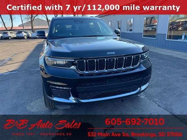 2024 Jeep Grand Cherokee L Limited — 4WD, V6, 3.6L, 47,319 miles — located in Brookings, SD. This spacious, confidently styled SUV delivers luxury and capability at the best price in the area. With a CARFAX Clean Report, you get peace of mind knowing this Jeep Grand Cherokee L has been well maintained. The potent 3.6L V6 engine and four-wheel drive system provide strong towing and confident handling in South Dakota weather, while the roomy three-row layout keeps passengers comfortable on every trip. Inside, premium leather seats and refined interior finishes create a first-class cabin feel. Advanced driver aids like Adaptive Cruise Control and Forward Collision Warning enhance safety and reduce driver fatigue on long highway stretches. Hands-Free Bluetooth ensures seamless connectivity for calls and audio streaming without taking your hands off the wheel. This Limited trim balances upscale comfort with rugged versatility — perfect for families, commuters, or outdoor enthusiasts who need space and performance. The odometer shows 47,319 miles, reflecting plenty of life left in this reliable Jeep. Priced to move, this vehicle represents the best value for a 2024 Jeep Grand Cherokee L with this equipment package in Brookings and surrounding communities. Schedule a test drive today to experience the smooth ride, premium features, and confident 4WD capability in person. Don't miss this opportunity to own a well-equipped, clean-title Jeep Grand Cherokee L at an unbeatable price.