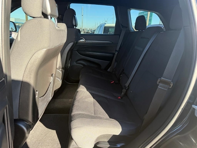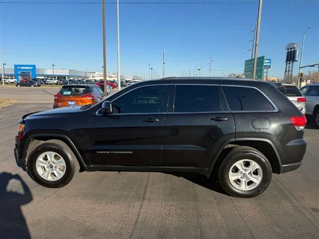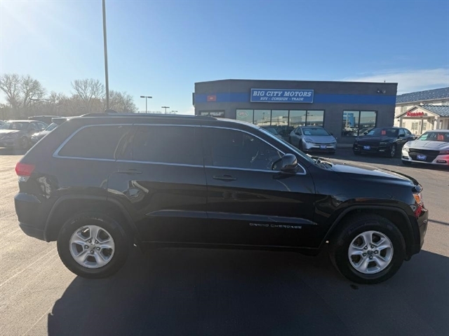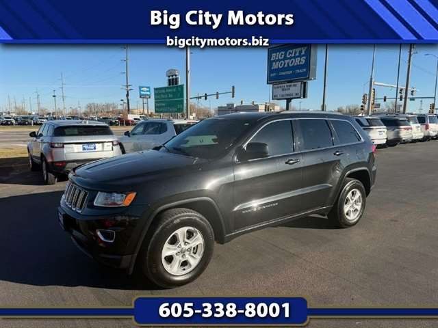 Take on the roads in style with this sleek and powerful 2015 Jeep Grand Cherokee! This black beauty packs a punch with its automatic full-time four-wheel drive and 3.45 rear axle ratio, making it ready for any adventure that comes its way. With a spacious interior featuring a leather/metal-look steering wheel and cloth rear seats that fold flat for extra cargo room, this Jeep is as practical as it is luxurious. Its striking exterior design, complete with chrome accents and fog lamps, will turn heads wherever you go.Equipped with a 160 amp alternator and towing equipment, this Grand Cherokee is ready to haul up to 1320 pounds with ease. The 24.6-gallon fuel tank ensures you can keep cruising without frequent stops at the pump. Safety is a top priority, with dual-stage front airbags, side impact beams, and rear child safety locks keeping you and your passengers protected. And rest assured, a Carfax report is available to give you peace of mind.Come experience the thrill of driving this versatile and reliable 2015 Jeep Grand Cherokee - the open road awaits! Visit Big City Motors to shop our great deals. You can call 605-338-8001 to schedule your test drive today.
