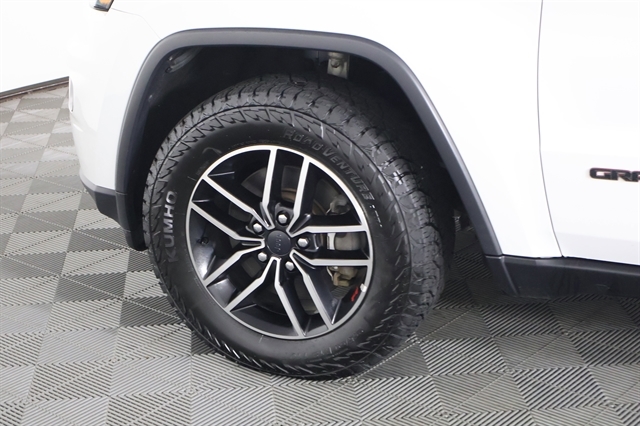 Check out the rest of the great features on this car! Quick Order Package 22J, Trailhawk Luxury Group (Cargo Compartment Cover, Dual-Pane Panoramic Sunroof, Power Tilt/Telescope Steering Column, Rain Sensitive Windshield Wipers, and Trailhawk Leather Trim Seats w/Perforation), 4WD, 1-Year SiriusXM Guardian Trial, 10 Speakers, 4-Wheel Disc Brakes, 4G LTE Wi-Fi Hot Spot, 8.4 Touchscreen Display, ABS brakes, Air Conditioning, Alloy wheels, AM/FM radio: SiriusXM, Anti-whiplash front head restraints, Apple CarPlay, Apple CarPlay/Android Auto, Audio memory, Auto-dimming door mirrors, Auto-dimming Rear-View mirror, Auto-leveling suspension, Automatic temperature control, Brake assist, Bumpers: body-color, Compass, Delay-off headlights, Driver door bin, Driver vanity mirror, Dual front impact airbags, Dual front side impact airbags, Electronic Stability Control, Emergency communication system: SiriusXM Guardian, Four wheel independent suspension, Front anti-roll bar, Front Bucket Seats, Front Center Armrest w/Storage, Front dual zone A/C, Front fog lights, Front reading lights, Fully automatic headlights, Garage door transmitter, Google Android Auto, GPS Antenna Input, GPS Navigation, HD Radio, Heated door mirrors, Heated front seats, Heated rear seats, Heated steering wheel, Illuminated entry, Integrated Center Stack Radio, Integrated Voice Command w/Bluetooth, Knee airbag, Leather Shift Knob, Low tire pressure warning, Memory seat, Navigation System, Normal Duty Suspension - Increased Travel, Occupant sensing airbag, Outside temperature display, Overhead airbag, Overhead console, Panic alarm, ParkView Rear Back-Up Camera, Passenger door bin, Passenger vanity mirror, Power door mirrors, Power driver seat, Power Liftgate, Power moonroof, Power passenger seat, Power steering, Power windows, Radio data system, Radio: Uconnect 4C Nav w/8.4 Display, Rear anti-roll bar, Rear reading lights, Rear seat center armrest, Rear window defroster, Rear window wiper, Remote keyless entry, Security system, SiriusXM Satellite Radio, SiriusXM Traffic Plus, SiriusXM Travel Link, Speed control, Speed-sensing steering, Speed-Sensitive Wipers, Split folding rear seat, Spoiler, Steering wheel mounted audio controls, Tachometer, Telescoping steering wheel, Tilt steering wheel, Traction control, Trailhawk Leather/Suede Seats, Trip computer, Turn signal indicator mirrors, USB Host Flip, Variably intermittent wipers, Ventilated front seats, Voltmeter, and Wheels: 18 x 8.0 Off Road Aluminum.