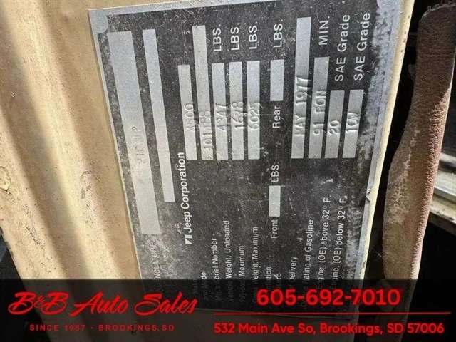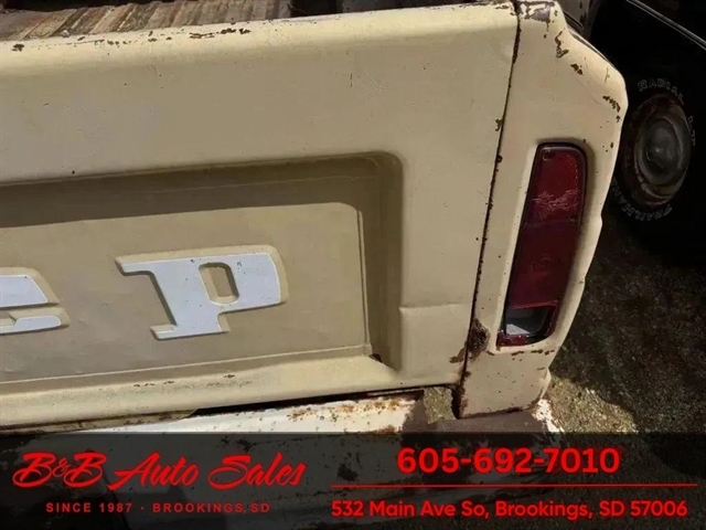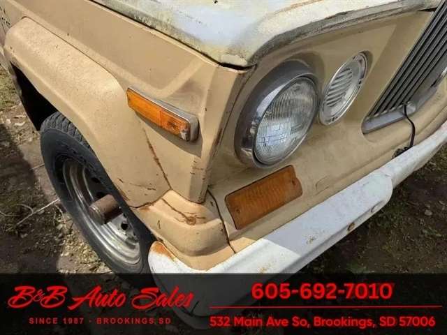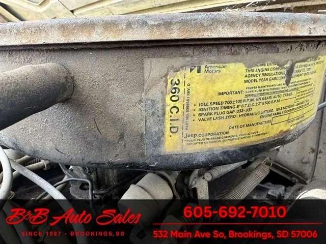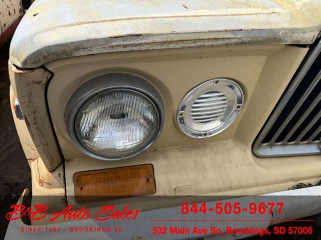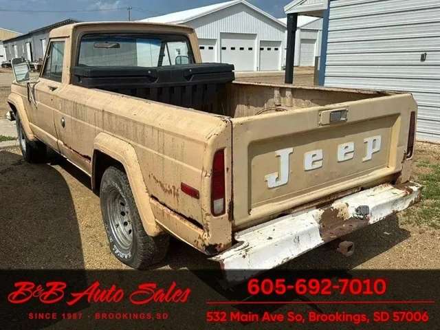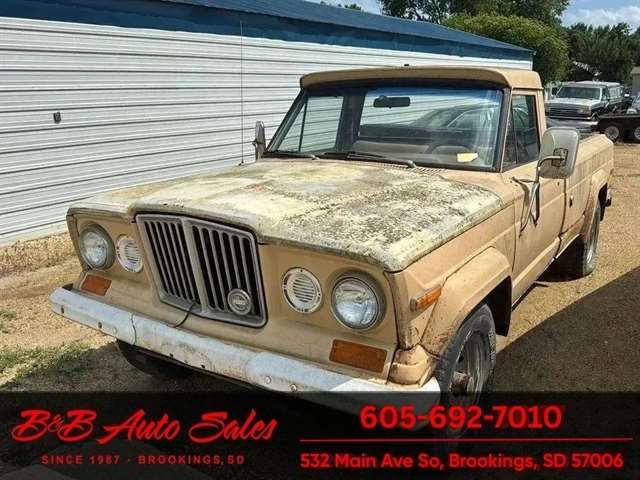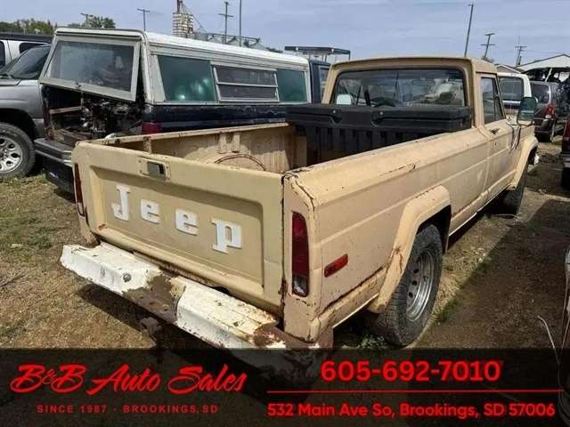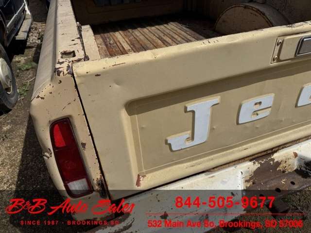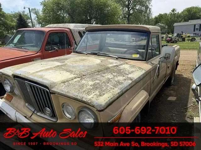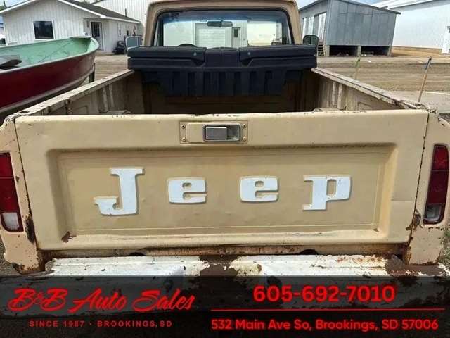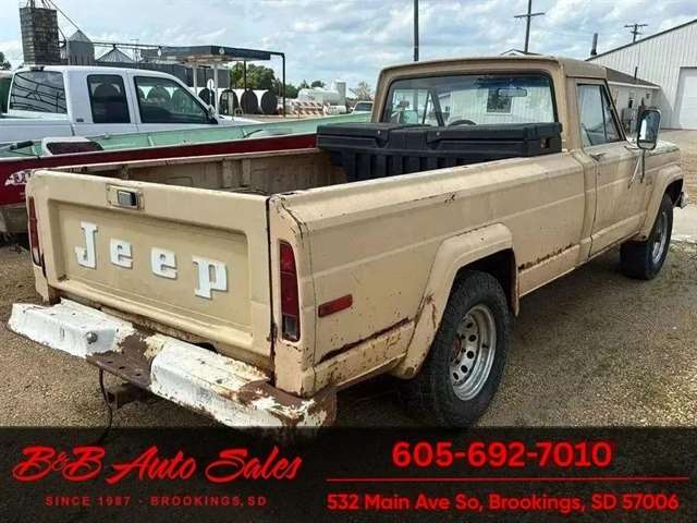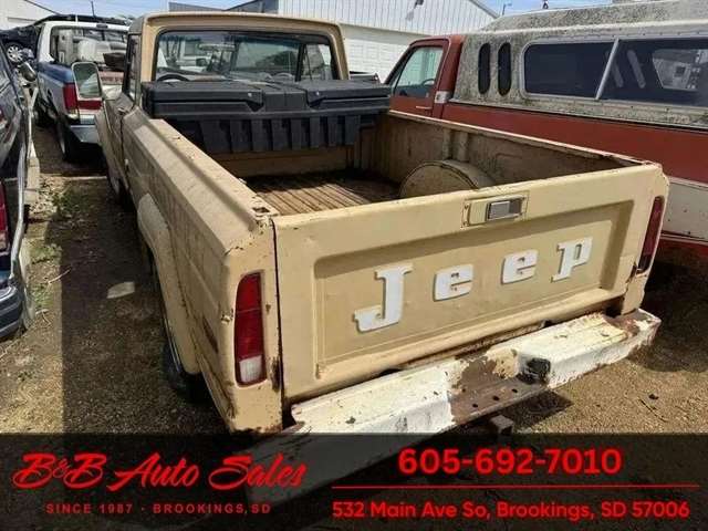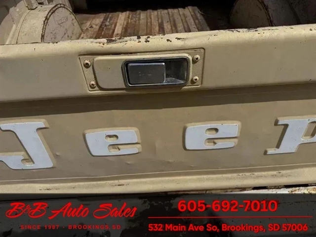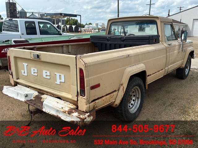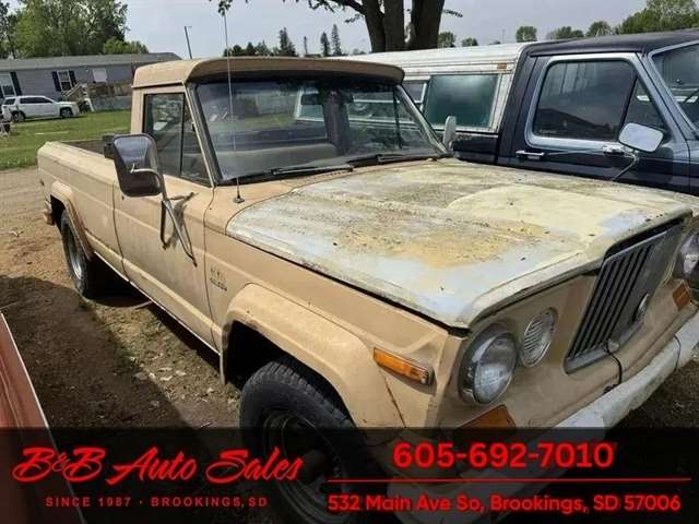 Here is a good project Jeep Pickup 4x4. It does run but engine knocks so will need replaced or rebuilt. Will trailer load. It has a 360 v8, automatic and 4x4. Call or text Dirk at 605-695-7391 or Darren 605-695-9555 with any questions. B and B Auto Sales, 5324 W Main White SD 57276