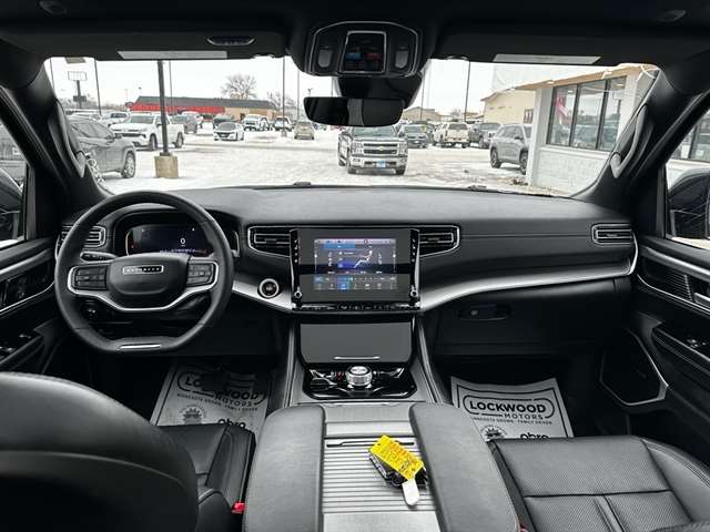 The vehicle is equipped with the latest generation of XM/Sirius Radio. The leather seats in the Jeep Wagoneer L are a must for buyers looking for comfort, durability, and style. This 1/2 ton suv offers Apple CarPlay for seamless connectivity. This 2024 Jeep Wagoneer L has auto-adjust speed for safe following. Bluetooth technology is built into it, keeping your hands on the steering wheel and your focus on the road. See what's behind you with the back up camera on this unit. This unit is pure luxury with a heated steering wheel. You'll never again be lost in a crowded city or a country region with the navigation system on this 1/2 ton suv. This Jeep Wagoneer L's Forward Collision Warning feature alerts drivers to potential front-end collisions. This 1/2 ton suv offers Android Auto for seamless smartphone integration. Load groceries and much more with ease into this vehicle thanks to the power liftgate.
