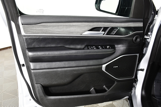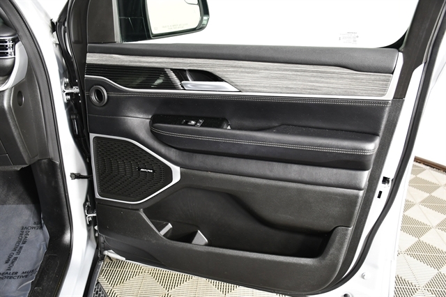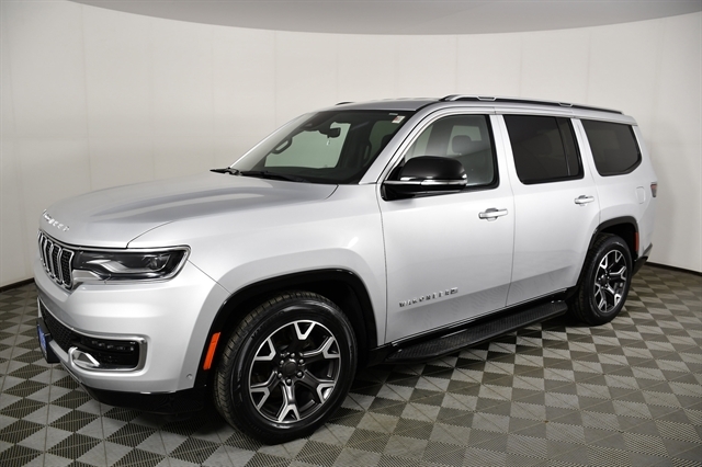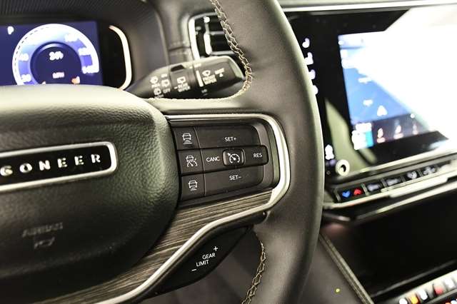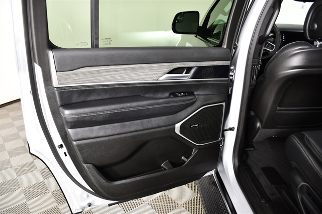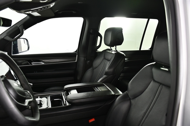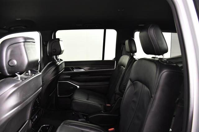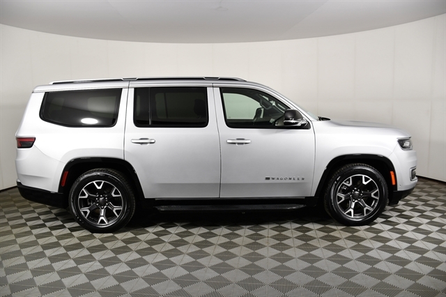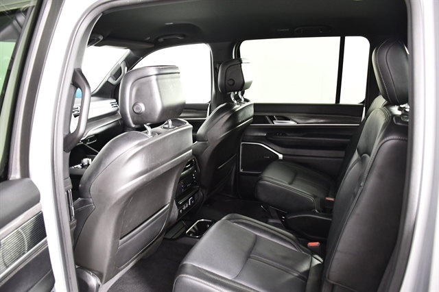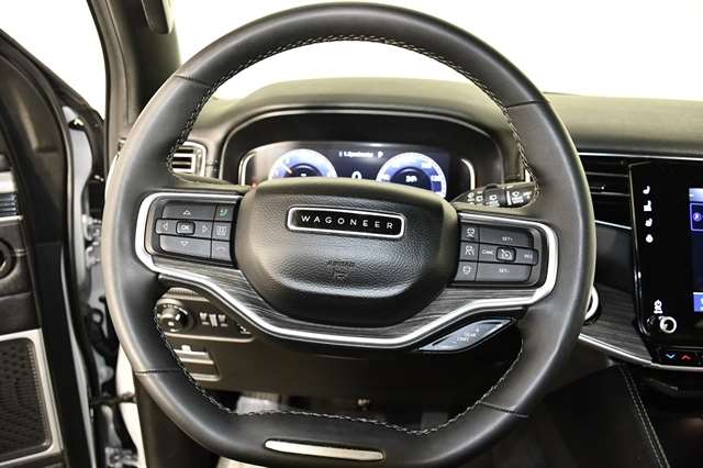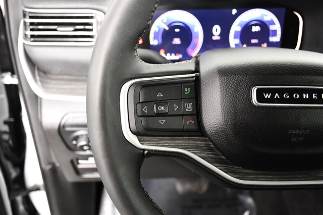 Check out the rest of the great features on this car! Quick Order Package 25N, 10 Speakers, 3.55 Rear Axle Ratio, 3rd row seats: bench, 4-Wheel Disc Brakes, ABS brakes, Adjustable pedals, Air Conditioning, Alloy wheels, AM/FM radio: SiriusXM with 360L, Anti-whiplash front head restraints, Apple CarPlay/Android Auto, Audio memory, Auto High-beam Headlights, Auto-dimming door mirrors, Auto-dimming Rear-View mirror, Auto-leveling suspension, Automatic temperature control, Brake assist, Bumpers: body-color, Compass, Delay-off headlights, Driver door bin, Driver vanity mirror, Driver`s Seat Mounted Armrest, Dual front impact airbags, Dual front side impact airbags, Electronic Stability Control, Emergency communication system: Wagoneer Connect, Exterior Parking Camera Rear, Four wheel independent suspension, Front anti-roll bar, Front Bucket Seats, Front Center Armrest w/Storage, Front dual zone A/C, Front fog lights, Front reading lights, Fully automatic headlights, Garage door transmitter, Genuine wood console insert, Genuine wood dashboard insert, Genuine wood door panel insert, Heated door mirrors, Heated front seats, Heated rear seats, Heated steering wheel, Illuminated entry, Knee airbag, Leather Trimmed Bucket Seats, Low tire pressure warning, Memory seat, Navigation System, Normal Duty Suspension, Occupant sensing airbag, Outside temperature display, Overhead airbag, Overhead console, Panic alarm, Passenger door bin, Passenger seat mounted armrest, Passenger vanity mirror, Pedal memory, Power adjustable front head restraints, Power door mirrors, Power driver seat, Power Liftgate, Power passenger seat, Power steering, Power windows, Radio data system, Radio: Uconnect 5 Nav w/10.1 Display, Rain sensing wipers, Rear air conditioning, Rear anti-roll bar, Rear dual zone A/C, Rear reading lights, Rear seat center armrest, Rear window defroster, Rear window wiper, Reclining 3rd row seat, Remote keyless entry, Security system, Speed control, Speed-sensing steering, Speed-Sensitive Wipers, Split folding rear seat, Steering wheel memory, Steering wheel mounted audio controls, Tachometer, Telescoping steering wheel, Tilt steering wheel, Traction control, Trip computer, Turn signal indicator mirrors, Variably intermittent wipers, Ventilated front seats, Voltmeter, and Wheels: 20 x 9.0 Aluminum (DISC)