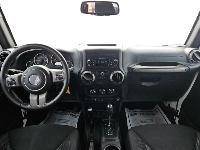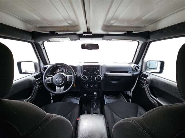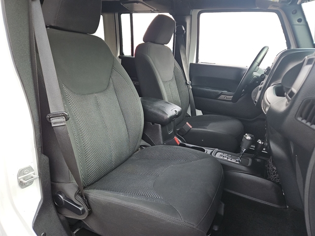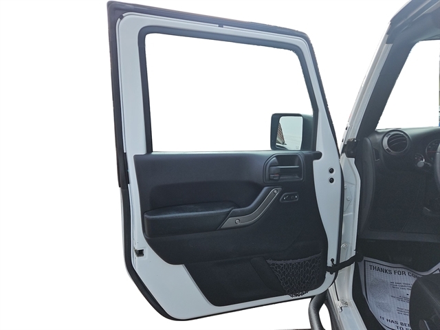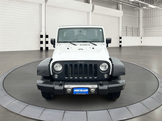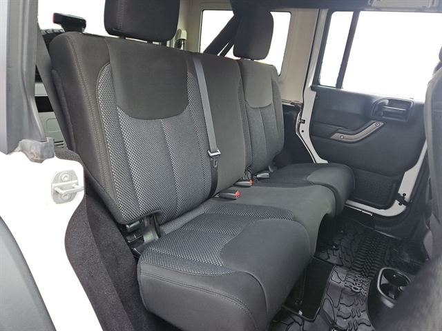 Fully Inspected and Serviced, Alloy Wheels, 8 Speakers, ABS brakes, AM/FM radio, Audio Jack Input for Mobile Devices, Auto-Dimming Mirror w/Reading Lamp, Black 3-Piece Hard Top, Black Bear Package, Black Cloth Seats w/Sport Mesh (DISC), Black/Chrome Screws Fuel Filler Door, CD player, Class II Receiver Hitch, Compass, Connectivity Group, Deep Tint Sunscreen Windows, Driver Height Adjuster Seat, Electronic Stability Control, Freedom Panel Storage Bag, Front 1-Touch Down Power Windows, Front fog lights, Front Seat Back Map Pockets, Granite Crystal Jeep Badge, Iron Gray Interior Accents, Low Gloss Black Grille, Low tire pressure warning, Mid Gloss Granite Crystal Appliques, MOPAR Black Tail Lamp Guards, MOPAR Slush Mats, Power Convenience Group, Power Heated Mirrors, Power Locks, Premium Black Sunrider Soft Top, Quick Order Package 23A Black Bear (DISC), Rear Window Defroster, Rear Window Wiper/Washer, Remote Keyless Entry, Remote USB Port, Security Alarm, Speed control, Tinted Rear Quarter & Liftgate Windows, Tire Pressure Monitoring Display, Traction control, Trailer Tow Group, Trailer Tow w/4-Pin Connector Wiring, Tubular Side Steps, Uconnect Voice Command w/Bluetooth, Vehicle Information Center, Wheels: 17`` x 7.5`` Blk Semi-Gloss Aluminum (DISC), Wrangler Hood Decal Low Gloss Black.