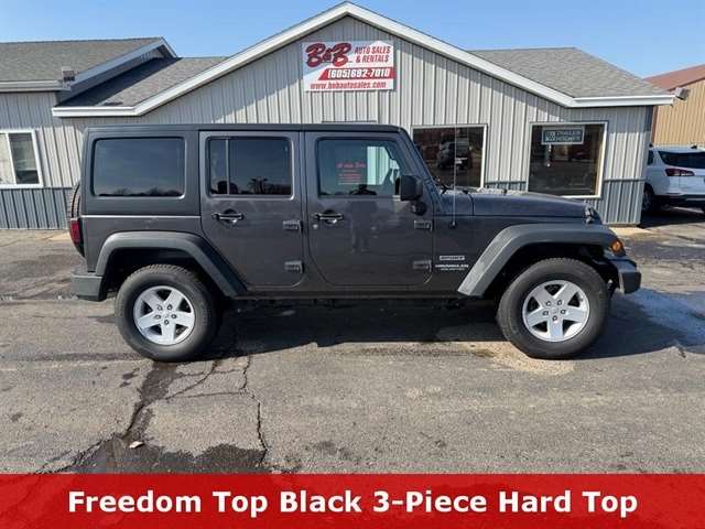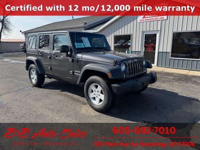 2017 Jeep Wrangler Sport 4WD — Brookings SD — Best Price Looking for a rugged, dependable 2017 Jeep Wrangler Sport with 4WD in Brookings SD? This V6, 3.6L gasoline Jeep Wrangler delivers power, off-road capability, and classic Jeep styling at the best price in the area. Ideal for weekend adventures, daily commuting, or seasonal travel, the Jeep Wrangler's 3.6L Pentastar V6 provides responsive acceleration and confident towing when needed. Comfort and convenience features include Hands Free Bluetooth for safer calls and music streaming, plus Satellite Radio for endless entertainment on long drives. The durable interior is built for life outdoors, with easy-to-clean surfaces and seating that balances comfort with functionality. Removable top and doors (depending on configuration) let you embrace open-air driving, while the solid 4WD system handles snow, mud, and gravel with confidence. This pre-owned Jeep has been inspected to ensure reliable performance and safety. Located in Brookings SD, this Jeep Wrangler Sport represents exceptional value — we're offering the best price in the region for a well-maintained, V6-powered 2017 model. Contact us today to schedule a test drive, request vehicle history, or learn about financing options. Drive home a capable Jeep Wrangler Sport at a price that's hard to beat.