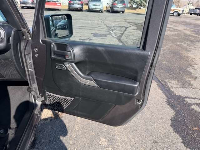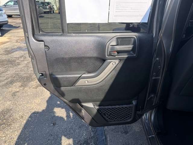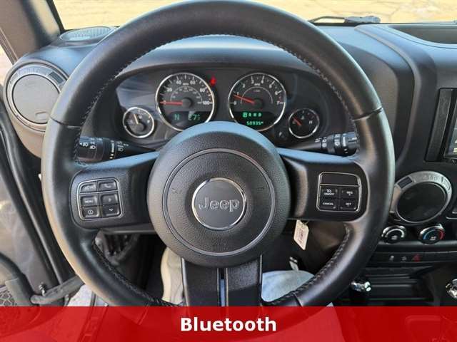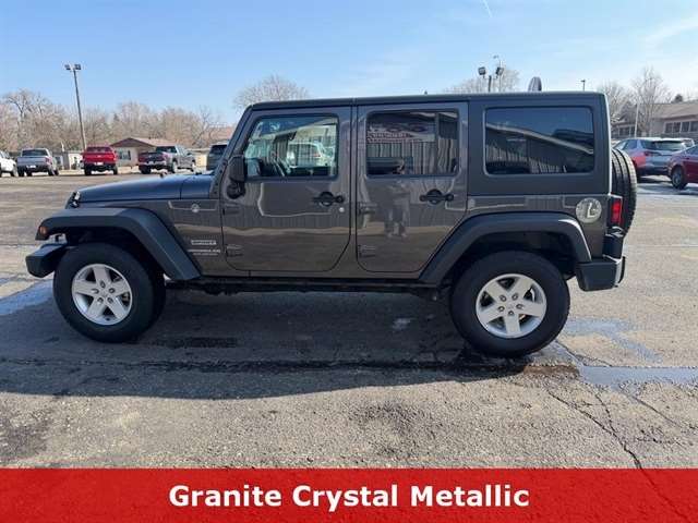 This vehicle has satellite radio capabilities. It features a hands-free Bluetooth phone system. Set the temperature exactly where you are most comfortable in it. The fan speed and temperature will automatically adjust to maintain your preferred zone climate. This unit projects refinement with a racy metallic gray exterior. With the keyless entry system on the vehicle you can pop the trunk without dropping your bags from the store. When you encounter slick or muddy roads, you can engage the four wheel drive on this mid-size suv and drive with confidence. This model has a V6, 3.6L high output engine. This 2017 Jeep Wrangler has fog lights for all weather conditions. This mid-size suv is equipped with a gasoline engine. Easily set your speed in the vehicle with a state of the art cruise control system. Increase or decrease velocity with the touch of a button. It features heated side mirrors keeping the ice off and your vision spot-on.