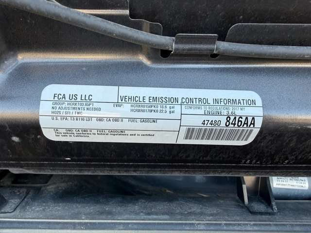 Quick Order Package 24S: Auto Dim Mirror with Reading Lamp; Front 1-Touch Down Power Windows; P255/75R17 OWL On/off Road Tires; Power Heated Mirrors; 17" X 7.5" Aluminum Wheels; Leather Wrapped Steering Wheel; Power Convenience Group; Deep Tint Sunscreen Windows; Security Alarm; Power Locks; Remote Keyless Entry. Max Tow Package: Class II Receiver Hitch; Trailer Tow with 4-Pin Connector Wiring; 3.73 Rear Axle Ratio. Quick Order Package 23C. Connectivity Group: Vehicle Information Center; Remote USB Port; Uconnect Voice Command with Bluetooth; Tire Pressure Monitoring Display; Vehicle Information Center; Remote USB Port; Leather Wrapped Steering Wheel; Uconnect Voice Command with Bluetooth; Tire Pressure Monitoring Display. Black 3-Piece Hard Top. Alpine 9-Speaker with All Weather Subwoofer. 3.73 Rear Axle Ratio. SIRIUS Satellite Radio. **Equipment listed is based on original vehicle build and subject to change. Please confirm the accuracy of the included equipment by calling the dealer prior to purchase.**