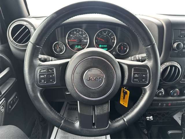 Fully Inspected and Serviced, 17`` x 7.5`` Aluminum Wheels, 8 Speakers, ABS brakes, Air Conditioning, AM/FM radio, Auto-Dimming Mirror w/Reading Lamp, Black 3-Piece Hard Top, CD player, Chrome/Leather Wrapped Shift Knob, Class II Receiver Hitch, Connectivity Group, Deep Tint Sunscreen Windows, Electronic Stability Control, Freedom Panel Storage Bag, Front 1-Touch Down Power Windows, Leather Wrapped Steering Wheel, LED Fog Lamps, LED Lighting Group, LED Reflector Headlamps, Max Tow Package, Power Convenience Group, Power Heated Mirrors, Power Locks, Quick Order Package 24S, Rear Window Defroster, Rear Window Wiper/Washer, Remote Keyless Entry, Remote USB Port, Security Alarm, Steering wheel mounted audio controls, Tire Pressure Monitoring Display, Traction control, Trailer Tow w/4-Pin Connector Wiring, Uconnect Voice Command w/Bluetooth, Vehicle Information Center.