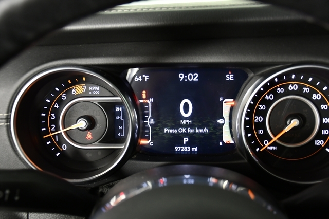 Check out the rest of the great features on this car! 8.4 Radio & Premium Audio Group (1-Year SiriusXM Guardian Trial, 4G LTE Wi-Fi Hot Spot, 5-Year SiriusXM Traffic Service, 5-Year SiriusXM Travel Link Service, 8.4 Touchscreen Display, Auto-Dimming Rear-View Mirror, Emergency/Assistance Call, For Details, Visit DriveUconnect.ca, GPS Navigation, HD Radio, Radio: Uconnect 4C Nav w/8.4 Display, SiriusXM Traffic Plus, and SiriusXM Travel Link), Cold Weather Group (Heated Front Seats and Heated Steering Wheel), LED Lighting Group (Daytime Running Lamps LED Accents, Front LED Fog Lamps, LED Reflector Headlamps, and LED Taillamps), Quick Order Package 28G, Safety Group (Blind Spot & Cross Path Detection and ParkSense Rear Park Assist System), Trailer Tow & HD Electrical Group (240 Amp Alternator, 7 & 4 Pin Wiring Harness, 700 Amp Maintenance Free Battery, Auxiliary Switches, and Class II Receiver Hitch), 3.45 Rear Axle Ratio, 4-Wheel Disc Brakes, 8 Speakers, ABS brakes, Air Conditioning, Alloy wheels, Alpine Premium Audio System, AM/FM radio: SiriusXM, Anti-Spin Differential Rear Axle, Apple CarPlay/Android Auto, Automatic temperature control, Black 3-Piece Hard Top, Brake assist, Cloth Low-Back Bucket Seats, Compass, Delay-off headlights, Driver door bin, Driver vanity mirror, Dual front impact airbags, Dual front side impact airbags, Electronic Stability Control, Freedom Panel Storage Bag, Front anti-roll bar, Front Bucket Seats, Front Center Armrest w/Storage, Front dual zone A/C, Front fog lights, Front reading lights, Fully automatic headlights, Garage door transmitter, Heated door mirrors, Heavy Duty Suspension w/Gas Shocks, Illuminated entry, Integrated roll-over protection, Leather steering wheel, Low tire pressure warning, No Soft Top, Non-Lock Fuel Cap w/o Discriminator, Occupant sensing airbag, Outside temperature display, Panic alarm, ParkView Rear Back-Up Camera, Passenger door bin, Passenger vanity mirror, Power door mirrors, Power steering, Power windows, Radio data system, Radio: Uconnect 4 w/7 Display, Rear anti-roll bar, Rear reading lights, Rear Window Defroster, Rear Window Wiper/Washer, Remote keyless entry, Remote Proximity Keyless Entry, Remote Start System, Security system, Speed control, Split folding rear seat, Steering wheel mounted audio controls, Tachometer, Telescoping steering wheel, Tilt steering wheel, Traction control, Trip computer, Variably intermittent wipers, Voltmeter, and Wheels: 18 x 7.5 Polished w/Gray SpokeS.