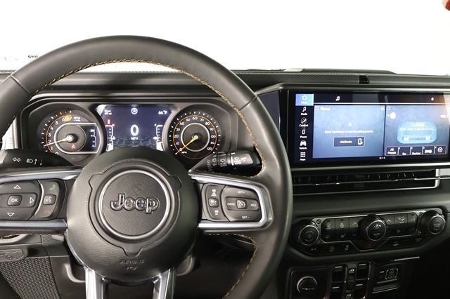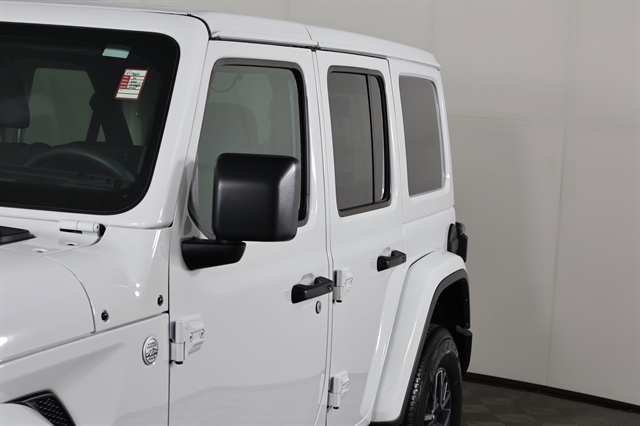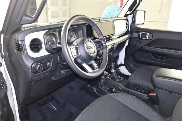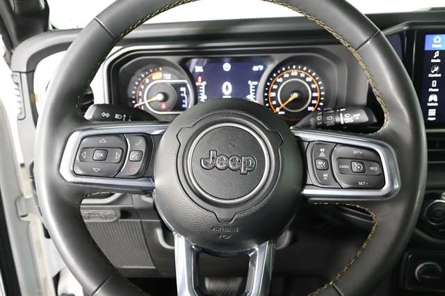 Check out the rest of the great features on this car! Quick Order Package 22G Sahara, 110 MPH Vehicle Max Speed Calibration, 12.3 Touchscreen Display, 3.45 Overall Top Gear Ratio, 4-Wheel Disc Brakes, 8 Speakers, ABS brakes, Air Conditioning, Alloy wheels, AM/FM radio: SiriusXM, Apple CarPlay, Apple CarPlay/Android Auto, Automatic temperature control, Aux Battery, Body Color 3-Piece Hard Top, Brake assist, Cloth Low-Back Bucket Seats, Compass, Connectivity - US/Canada, Delay-off headlights, Disassociated Touchscreen Display, Driver door bin, Driver vanity mirror, Dual front impact airbags, Dual front side impact airbags, Electronic Stability Control, Emergency communication system: Jeep Connect, Freedom Panel Storage Bag, Front anti-roll bar, Front Bucket Seats, Front Center Armrest w/Storage, Front dual zone A/C, Front fog lights, Front License Plate Bracket, Front reading lights, Fully automatic headlights, Google Android Auto, Heated door mirrors, Heated front seats, Heated steering wheel, Heavy Duty Suspension w/Gas Shocks, Illuminated entry, Integrated Center Stack Radio, Integrated roll-over protection, Integrated Voice Command w/Bluetooth, Low tire pressure warning, No Soft Top, Non-Lock Fuel Cap w/o Discriminator, Occupant sensing airbag, Outside temperature display, Overhead airbag, Panic alarm, ParkView Rear Back-Up Camera, Passenger door bin, Passenger vanity mirror, Power door mirrors, Power steering, Power windows, Radio data system, Radio: Uconnect 5 w/12.3 Display, Rear anti-roll bar, Rear reading lights, Rear Window Defroster, Rear Window Wiper/Washer, Remote keyless entry, Security system, Speed control, Split folding rear seat, Steering wheel mounted audio controls, Stop-Start Dual Battery System, Tachometer, Telescoping steering wheel, Tilt steering wheel, Traction control, Trip computer, Variably intermittent wipers, Voltmeter, and Wheels: 18 x 7.5 Machine/Painted Gray.