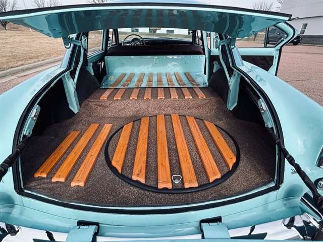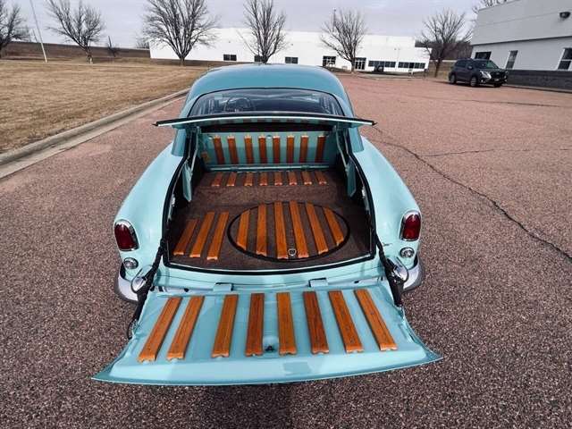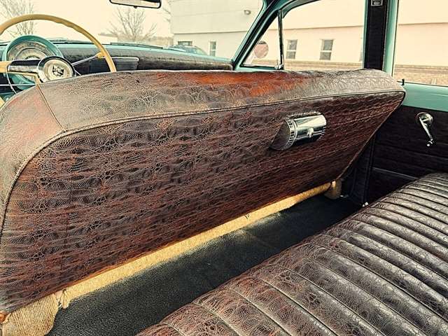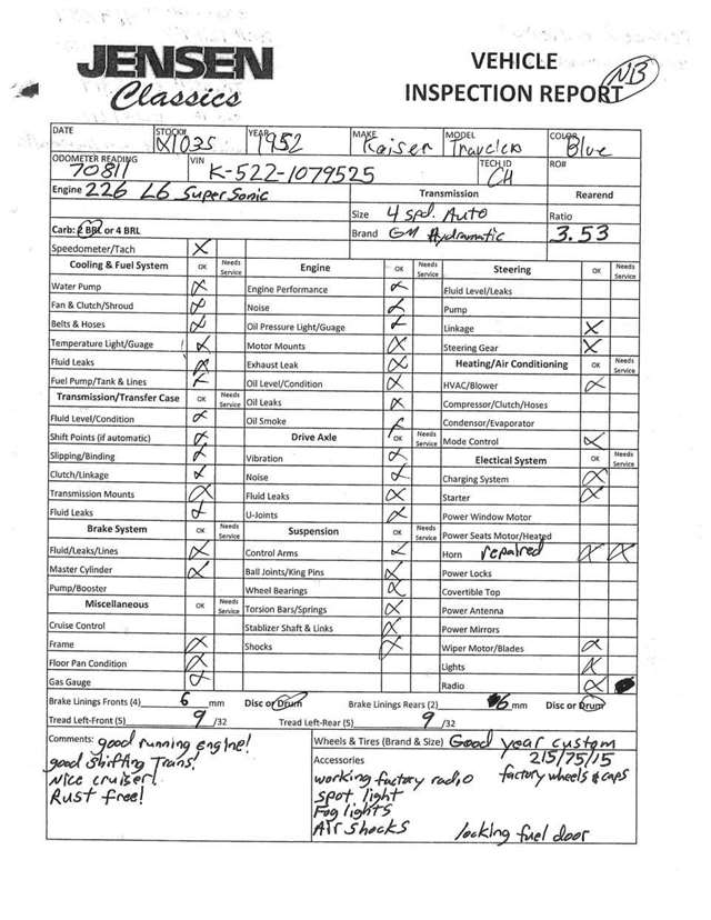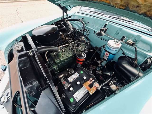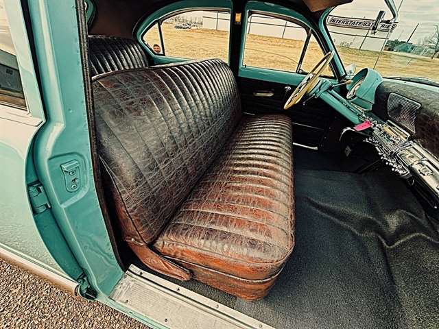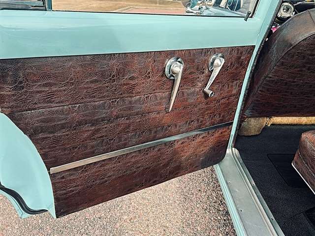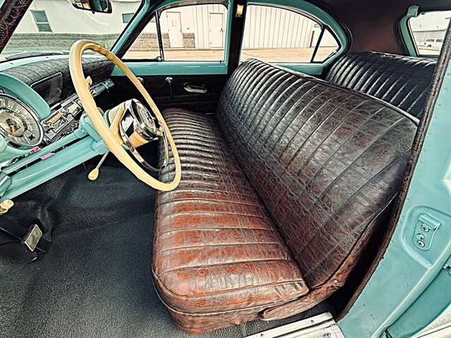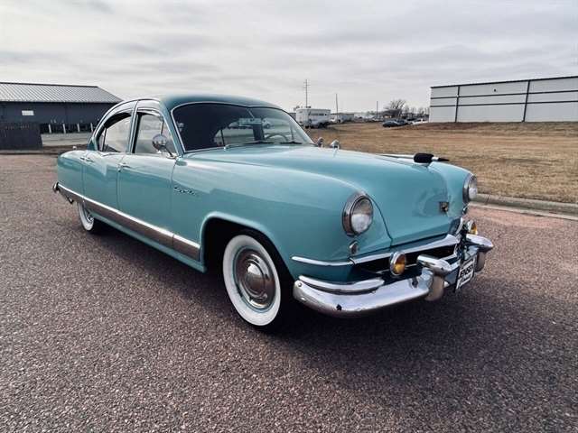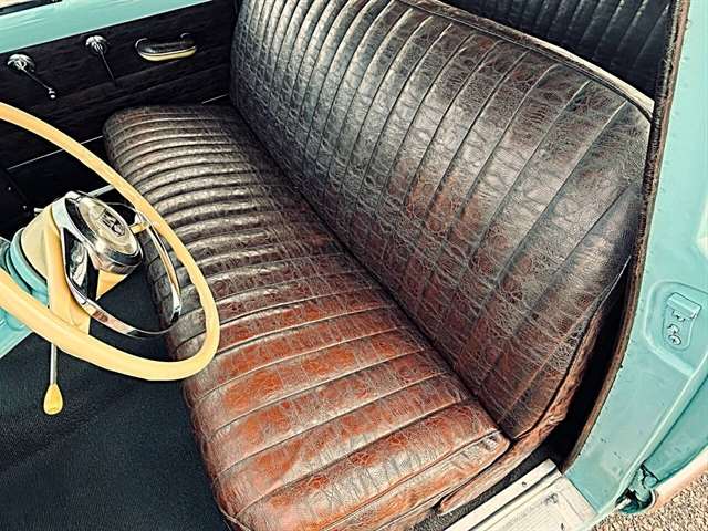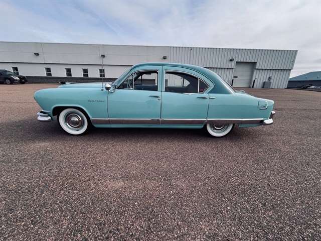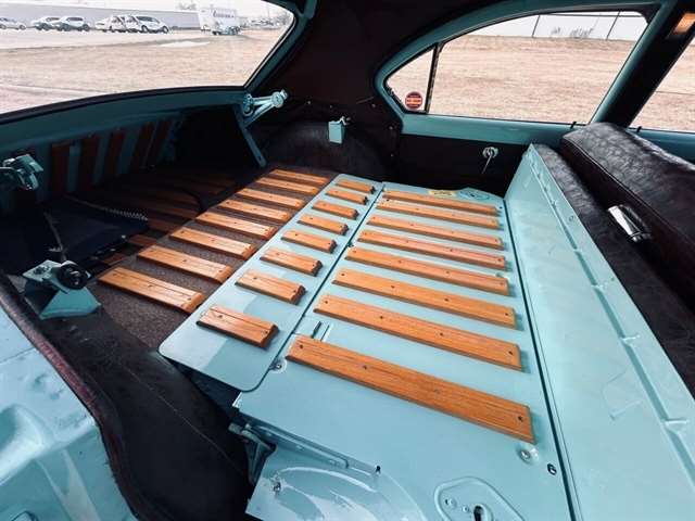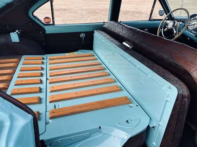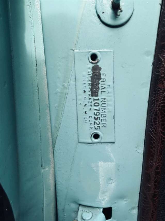 1952 Kaiser Traveler The 1951-1953 Kaiser Traveler was the brainchild of entrepreneur Henry J. Kaiser who, it was said, averaged about 100 ideas an hour and about one of them was good. The good ones, however, were worth pausing over. During World War II, one of these was Kaiser’s “cookie cutter” production line of Liberty and Victory ships, which broke the U-boat threat by sheer numbers after the war, another idea emerged as the Kaiser Traveler: the first hatchback. Improbable as it seems, the story really is true. Henry Kaiser conceived the 1951-1953 Kaiser Traveler by tracking the outlines of its double-opening hatches with his finger in the dust on a sedan in the Kaiser garage in Oakland. At that point, the idea was simplistic: cut out the entire deck and rear window area, hinge half of it to lift up and half to flop down, let them meet about halfway on the deck, and presto: a new kind of utility car. The smooth vinyl of the 1951-1953 Kaiser Traveler was heated and fed into a machine with refrigerated plates in the die design. The die then “kissed” the vinyl and immediately caused the design to set through heat transfer. The stuff was called “Dragon” and “Dinosaur” vinyl, Spencer said, “so no one would mistake it for real alligator or real lizard.” The following is quote from previous owner: “Produced in December 1951 by the Kaiser Frazer Corporation of Willow Run, Michigan. KF was the first to offer cars to the public after World War II and also unfortunately led the U.S. Independent manufacturers to cease operations in 1955. This 1951 Virginian Deluxe Traveler 4-door sedan has a 226 CI six-cylinder engine with 115 horsepower, dual range 4-speed hydromantic transmission, and original dinosaur vinyl upholstered seat, door panels and padded dash. The car was repainted about 14 years ago. Estimated production was 400 with only 4 remaining in the KF registry. This car was commonly used for utility purposes as well as funeral home flower cars, farmer hay hauling and personal family sedan-campers. Body styling is by Howard “Dutch” Darrin, one of the leading European coach builders before World War II. Senior Nation First Price Winner #26D0647 AACA for 1997 Paint is original Kaiser color of turquoise blue over cerulean blue 2007 Kaiser Frazer Calendar car for the month of April” If there happens to be another 52 Kaiser Traveler anywhere, odds are it’s not near as pristine Just an incredible restoration everywhere you look. Plus, a turnkey condition car meaning everything is operational, even including the working factory radio! Check out the 50+ pictures online which in our estimation does not do the car justice. Car is amazing. Also included is a notebook that includes correspondence from Kaiser Frazer corporation, a number of confidential bulletins, a copy of a retail and wholesale invoice and more.