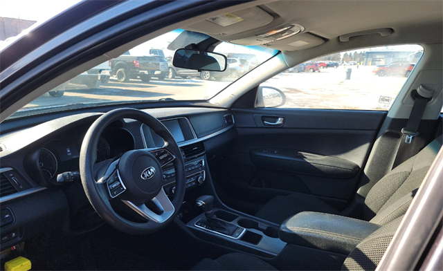 BLUETOOTH, ALL BOOKS AND KEYS, **Back-Up Camera**, **APPLE CARPLAY/ ANDROID AUTO**, **BLIND SPOT MONITOR**, Optima LX, 4D Sedan, 2.4L I4 DGI DOHC, FWD, Platinum Graphite, Black w/Sport Cloth Seat Trim, 4-Wheel Disc Brakes, 6 Speakers, ABS brakes, Air Conditioning, Aluminum Wheels, Apple CarPlay & Android Auto, Auto High-beam Headlights, Cloth Seat Trim, Four wheel independent suspension, Front Bucket Seats, Fully automatic headlights, Heated door mirrors, Outside temperature display, Panic alarm, Power door mirrors, Radio: AM/FM/MP3 Audio System, Remote keyless entry, Security system, Speed control, Speed-sensing steering, Split folding rear seat, Steering wheel mounted audio controls, Traction control.