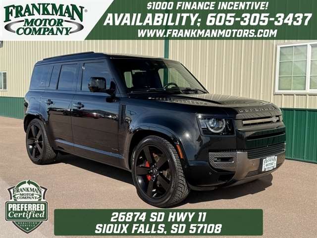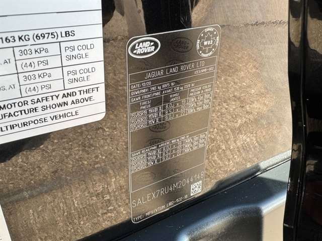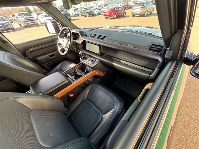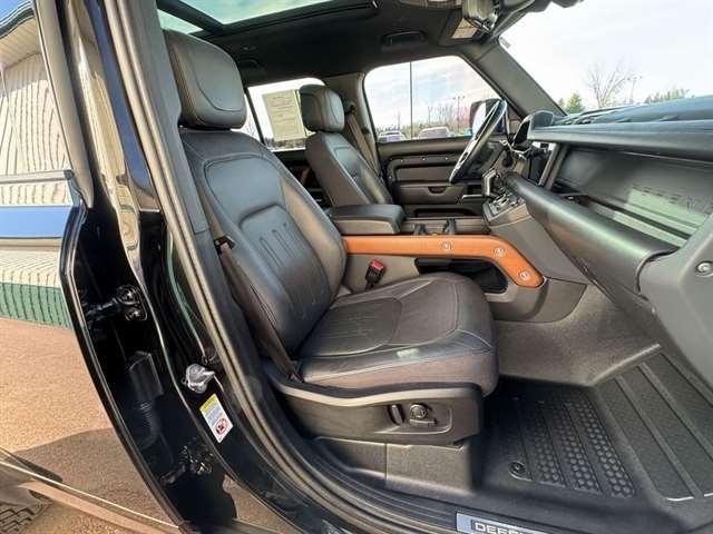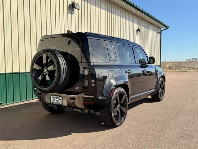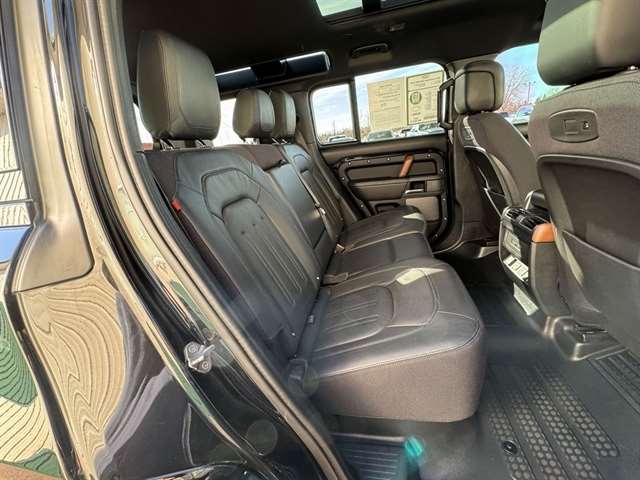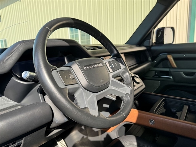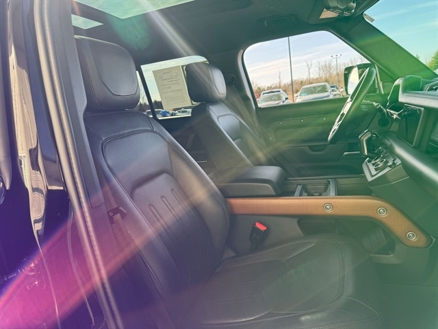 Santorini Black Metallic 2021 Land Rover Defender 110 X 4WD 8-Speed Automatic 3.0L I6 *Leather Seats, Navigation System, Sunroof/Moonroof, Bluetooth, Backup Camera, Collision Warning System, 360 degree Camera, Adaptive Cruise Control, Heated and Cooled Seats, Blind-Spot Monitors, Lane Keeping Assist, Touchscreen Controls, Heads-Up Display, Keyless Access with Push Button Start, Automatic Headlights, Keyless Entry, Multi-zone Climate Control, Steering Wheel Controls, Premium Wheels, Trailer Hitch, Apple CarPlay & Android Auto, Automatic temperature control, Front fog lights, Garage door transmitter: HomeLink, Heads-Up Display, Heated rear seats, Heated Steering Wheel, Memory seat, Navigation system: Connected Navigation PIVI Pro, Outside temperature display, Power driver seat, Power moonroof, Power passenger seat, Radio: 825W 15 Speaker Meridian Surround Sound Sys, Rain sensing wipers, Rear window defroster, Telescoping steering wheel, Trailer Hitch w/Electrical Connector, Wheels: 22`` Gloss Black Finish Style 5098.