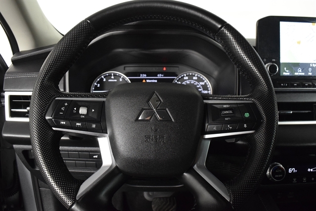 Check out the rest of the great features on this car! Mitsubishi Certified Pre-Owned VE Certified, 4WD, 3rd row seats: split-bench, 4-Wheel Disc Brakes, 5.694 Axle Ratio, 6 Speakers, ABS brakes, Air Conditioning, Alloy wheels, AM/FM radio: SiriusXM, Android Auto & Apple CarPlay, Auto High-beam Headlights, Automatic temperature control, Brake assist, Bumpers: body-color, Driver door bin, Driver vanity mirror, Dual front impact airbags, Dual front side impact airbags, Electronic Stability Control, Emergency communication system: Mitsubishi Connect w/ 24-month trial, Exterior Parking Camera Rear, Four wheel independent suspension, Front anti-roll bar, Front Bucket Seats, Front Center Armrest w/Storage, Front dual zone A/C, Front fog lights, Front reading lights, Fully automatic headlights, Headlight cleaning, Heated door mirrors, Heated Front Bucket Seats, Heated front seats, Illuminated entry, Knee airbag, Leather Shift Knob, Leather steering wheel, Low tire pressure warning, Navigation System, Occupant sensing airbag, Outside temperature display, Overhead airbag, Overhead console, Panic alarm, Passenger door bin, Passenger vanity mirror, Power door mirrors, Power driver seat, Power Liftgate, Power steering, Power windows, Radio data system, Rain sensing wipers, Rear anti-roll bar, Rear seat center armrest, Rear side impact airbag, Rear window defroster, Rear window wiper, Reclining 3rd row seat, Remote keyless entry, Security system, Speed control, Speed-Sensitive Wipers, Split folding rear seat, Spoiler, Steering wheel mounted audio controls, Synthetic Leather Seat Trim, Tachometer, Telescoping steering wheel, Tilt steering wheel, Traction control, Trip computer, Turn signal indicator mirrors, and Variably intermittent wipers.