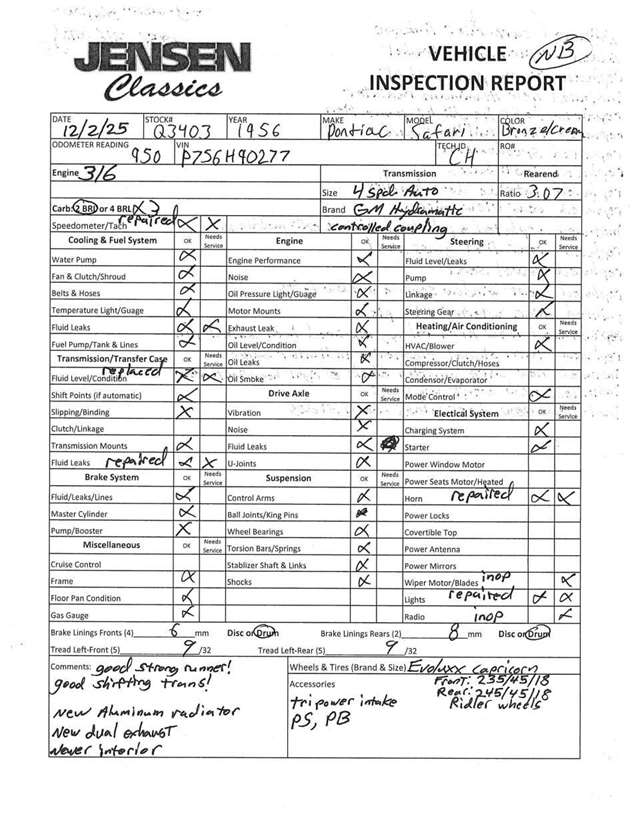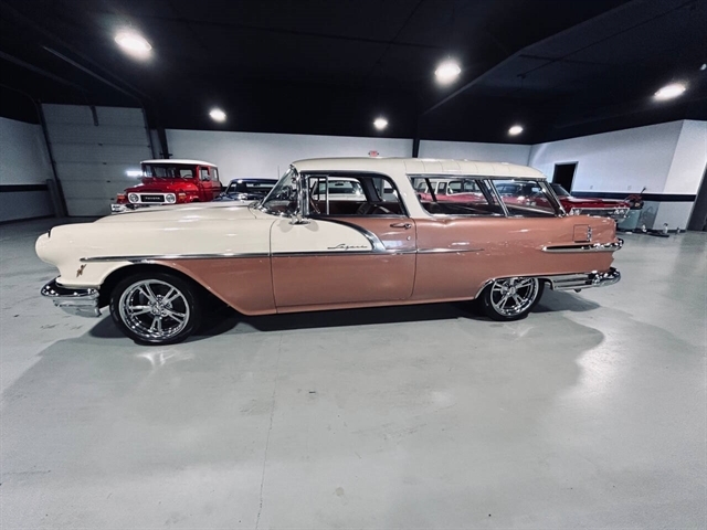 1956 Pontiac Safari Presenting a highly sought after 1956 Pontiac safari that’s undergone a comprehensive and high-end restoration/customization that’s impressive. Not only is this thing a head Turner cosmetically and aesthetically, It’s also a blast drive. Powered by a 316 CI Pontiac “Strato-Stream” engine with a tri-power set up, 3 2-barrel carburetors, mated to a GM Hydramatic four-speed automatic transmission and she scoots. Check out the pictures of this gorgeous Safari. Paint is awesome, all the chrome and stainless, the opulent trim and ornamentation are an indication of the times when cars were art. Power steering, power, brakes, two-tone paint, custom interior, and more. Hard to find fault with this 56 Safari in any respect ……inside and out, top and bottom, anywhere you look the more you like.