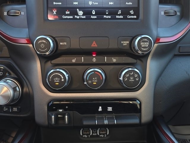The exterior of this Rebel model exudes a bold and rugged presence, with its distinctive black accents, body-color door handles, and 18-inch painted black wheels. Step inside and you`ll be greeted by a well-appointed interior, featuring heated front seats, a heated leather-wrapped steering wheel, and a host of convenience features that will make every drive a pleasure.