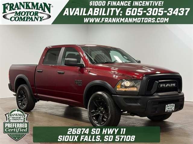 Featuring a stunning Delmonico Red Pearlcoat exterior and the Quick Order Package 29F Warlock, this 1500 Classic Warlock is built to impress. Under the hood, you`ll find a powerful 3.6L V6 24V VVT engine paired with an 8-Speed Automatic transmission and 4-wheel drive, delivering impressive efficiency with 16 city/23 highway MPG.