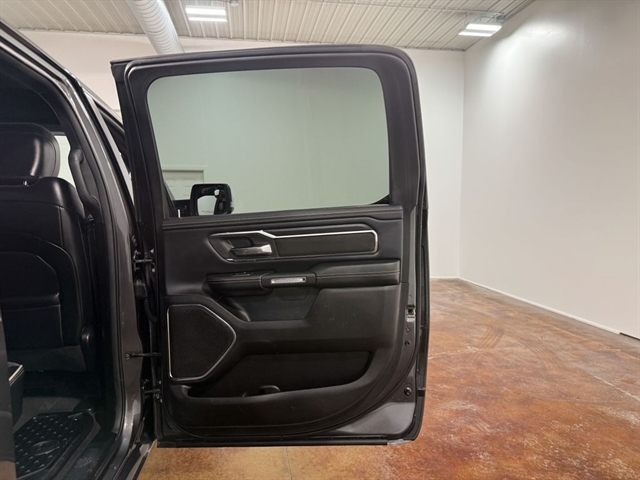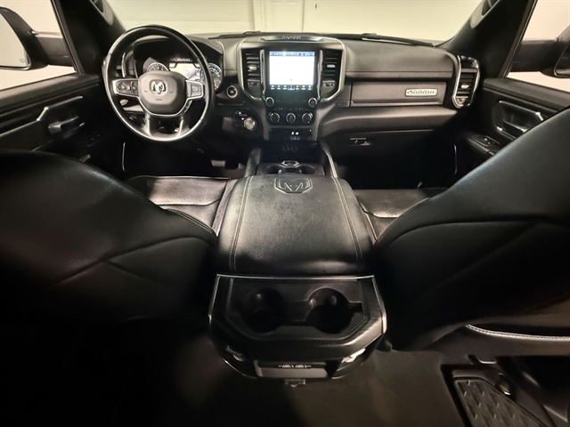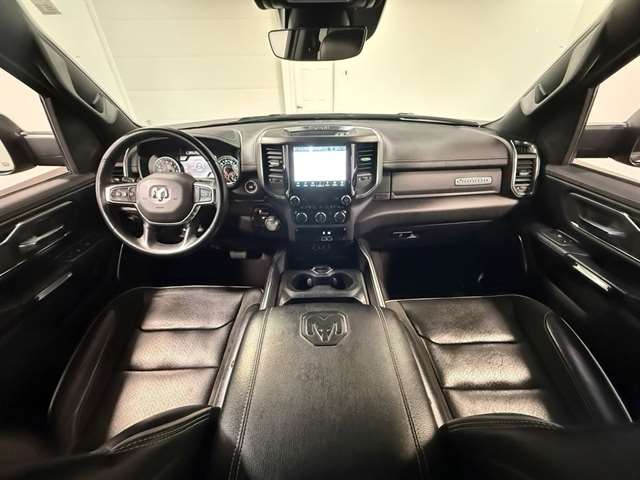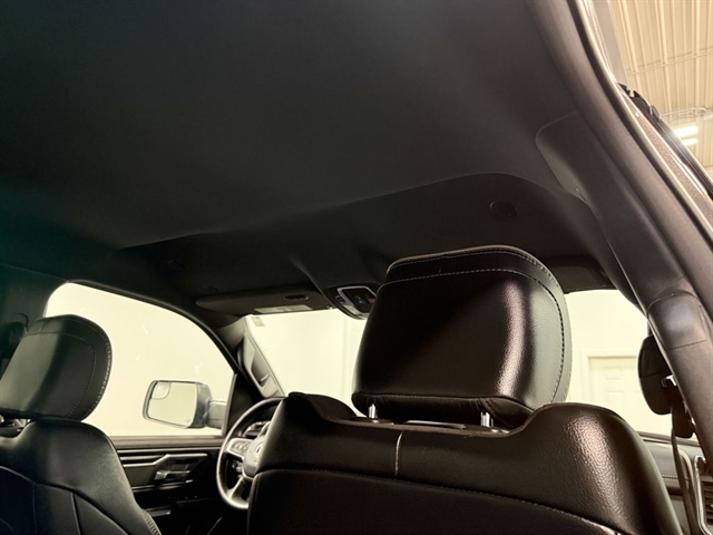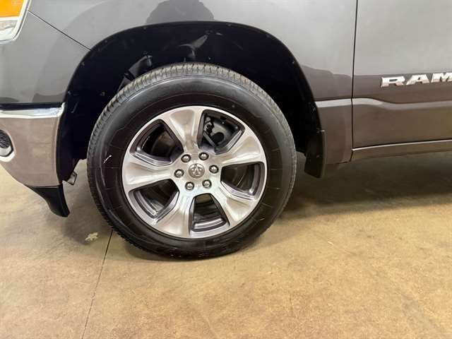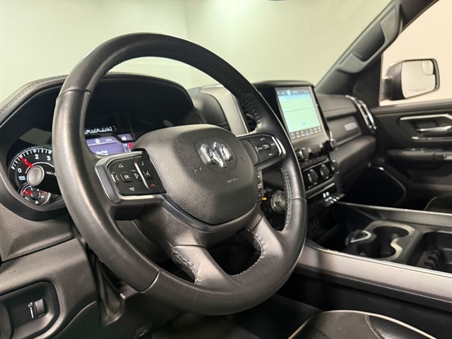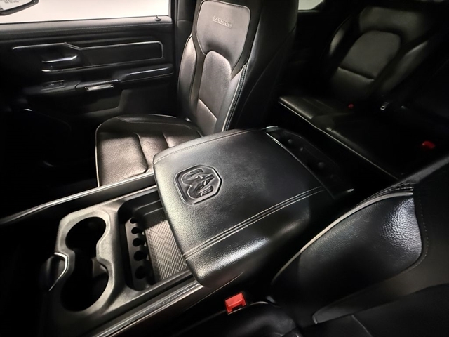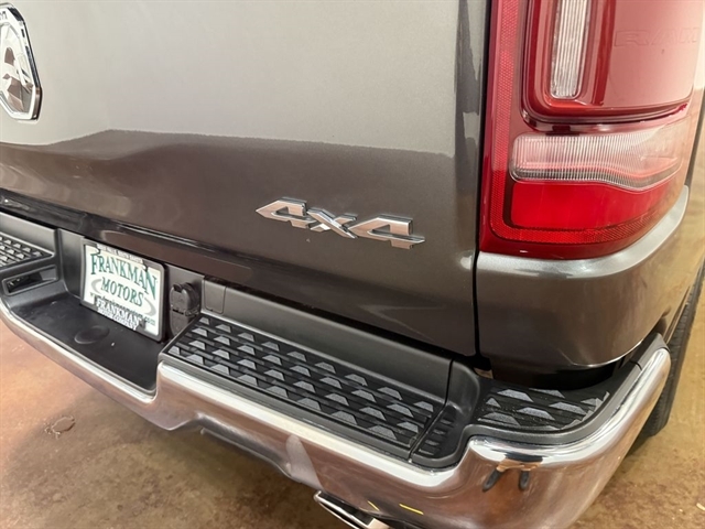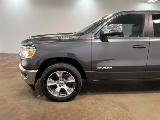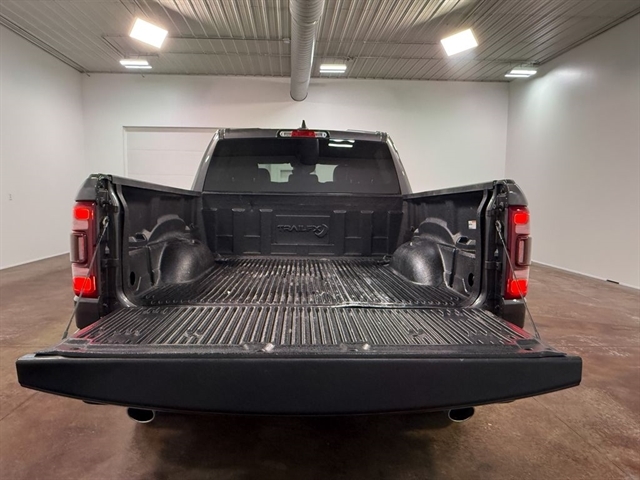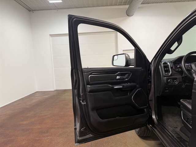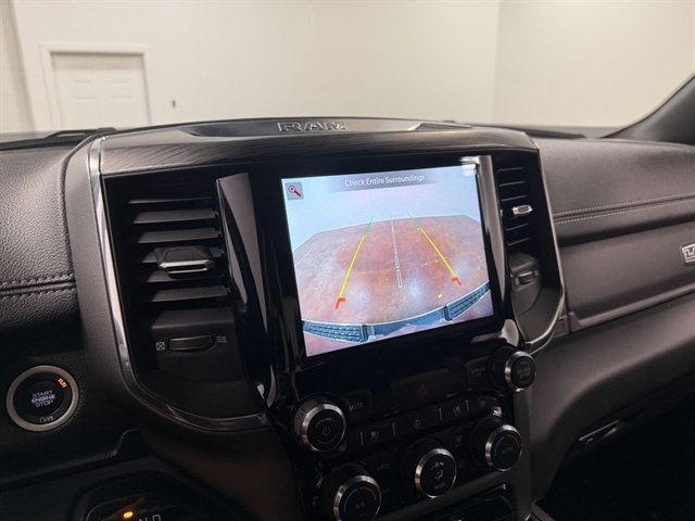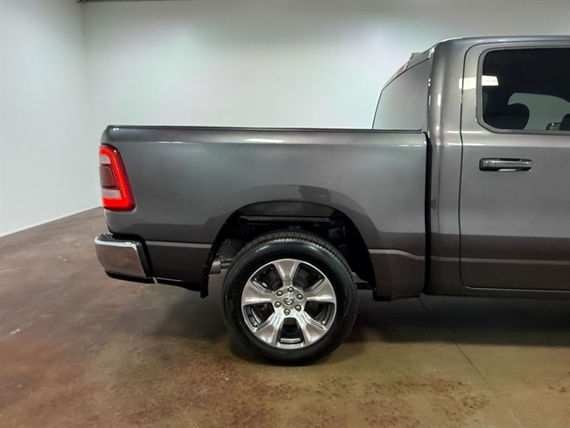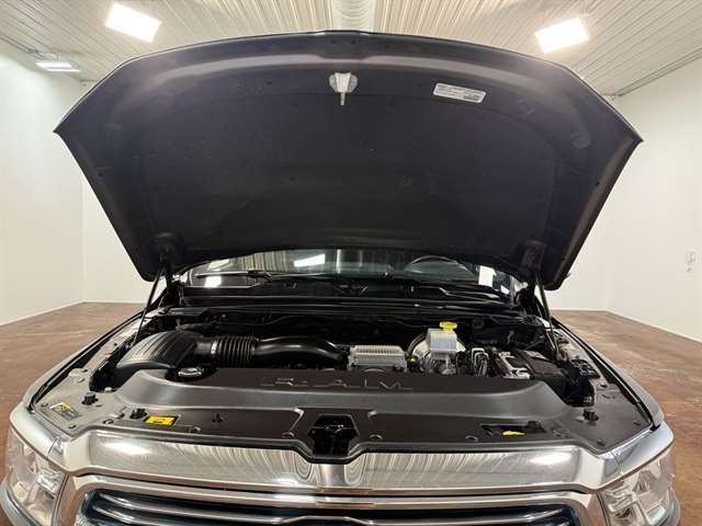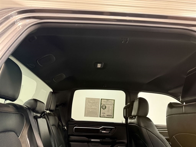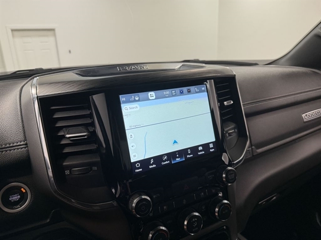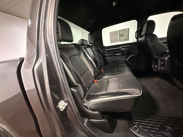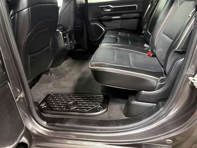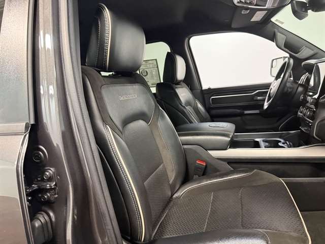 The exterior of this Ram 1500 Laramie is equally impressive, with a Granite Crystal Metallic Clearcoat paint finish and 20-inch premium painted and polished wheels that give it a bold, commanding presence. The chrome exterior accents and RAM grille badge add a touch of refined style.
