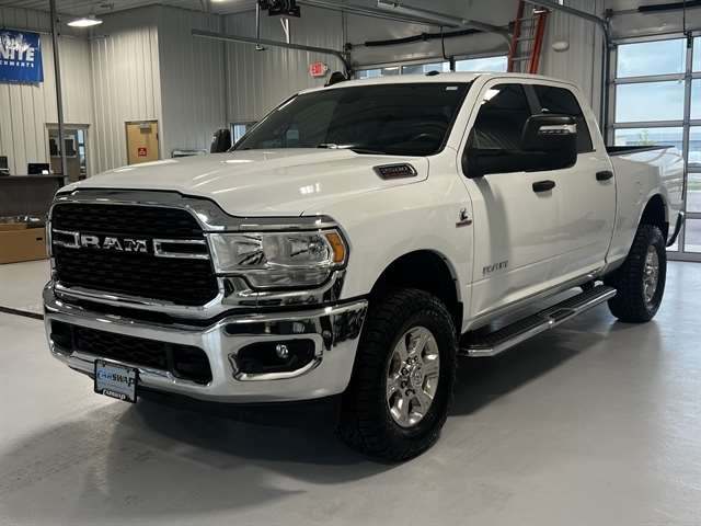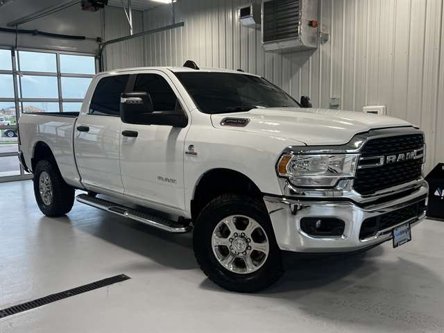 Fully detailed, 2 Way Rear Headrest Seat, 220 Amp Alternator, 2nd Row In Floor Storage Bins, 3.73 Axle Ratio, 4 Way Front Headrests, 4-Wheel Disc Brakes, 40/20/40 Split Bench Seat, 4G LTE Wi-Fi Hot Spot, 6 Speakers, 8.4`` Touchscreen Display, ABS brakes, Active Noise Control System, Air Conditioning, Anti-Spin Differential Rear Axle, Apple CarPlay, Auto Power-Folding Mirrors, Big Horn IP Badge, Black Exterior Mirrors, Bluetooth Handsfree Phone & Audio, Brake assist, Bumpers: chrome, Center Hub, Center Stack Storage Drawer, Chrome Flat Cab-Length Side Steps, Cloth 40/20/40 Bench Seat, Cold Weather Group, Compass, Connectivity - US/Canada, Delay-off headlights, Driver door bin, Dual front impact airbags, Dual front side impact airbags, Dual Glove Boxes, Electronic Stability Control, Electronically Controlled Throttle, Emergency communication system: SiriusXM Guardian, Engine Block Heater, Exterior Mirrors Courtesy Lamps, Exterior Mirrors w/Heating Element, Exterior Mirrors w/Supplemental Signals, Foam Bottle Insert (Door Trim Panel), Footwell Courtesy Lamp, For Details, Visit DriveUconnect.com, For More Info, Call 800-643-2112, Forward & Reverse Utility Lights, Front anti-roll bar, Front Armrest w/Cupholders, Front Center Armrest w/Storage, Front Center Seat Cushion Storage, Front Fog Lamps, Front License Plate Bracket, Front Performance Tuned Shock Absorbers, Front reading lights, Front Seat Back Map Pockets, Fully automatic headlights, Global Telematics Box Module (TBM), Glove Box Lamp, Google Android Auto, GPS Antenna Input, Heated door mirrors, Heavy Duty Snow Plow Prep Group, Hill Descent Control, Illuminated entry, Integrated Center Stack Radio, Integrated Voice Command w/Bluetooth, Leather Wrapped Steering Wheel, Level 1 Equipment Group, Locking Lower Glove Box, Low tire pressure warning, Manual Adjust 4-Way Driver Seat, Manual Adjust 4-Way Front Passenger Seat, Mirror Running Lights, MOPAR Spray In Bedliner, MOPAR Winter Front Grille Cover, Occupant sensing airbag, Outside temperature display, Overhead airbag, Overhead console, Panic alarm, ParkSense Front/Rear Park Assist System, ParkView Rear Back-Up Camera, Passenger door bin, Passenger vanity mirror, Power 2-Way Driver Lumbar Adjust, Power Adjust 8-Way Driver Seat, Power Adjust Mirrors, Power Adjustable Convex Aux Mirrors, Power door mirrors, Power Heated Fold Telescope Mirrors, Power steering, Power Telescoping Mirrors, Power windows, Premium Cloth 40/20/40 Bench Seat, Premium Cloth 40/20/40 Bench Seat (DISC), Radio data system, Radio: Uconnect 3 w/5`` Display, Radio: Uconnect 5 W w/8.4`` Display, Radio: Uconnect 5 W w/8.4`` Display (A62), Rear 60/40 Folding Seat, Rear anti-roll bar, Rear Backup Alarm, Rear Dome w/On/Off Switch Lamp, Rear Folding Seat, Rear Performance Tuned Shock Absorbers, Rear seat center armrest, Rear step bumper, Rear Window Defroster, Remote keyless entry, Remote USB Port - Charge Only, Selectable Tire Fill Alert, SiriusXM Radio Service, SiriusXM Satellite Radio, Speed control, Steering Wheel Mounted Audio Controls, Storage Tray, Tachometer, Tilt steering wheel, Tip Start, Tow Hooks, Traction control, Trip computer, Turn signal indicator mirrors, Variably intermittent wipers, Voltmeter, Wheels: 18`` x 8.0`` Polished Aluminum, Wheels: 18`` x 8.0`` Steel Chrome Clad. 2024 Ram 2500 Big Horn 4WD 6-Speed Automatic Cummins 6.7L I6 Turbodiesel