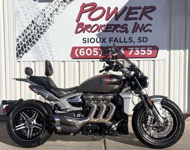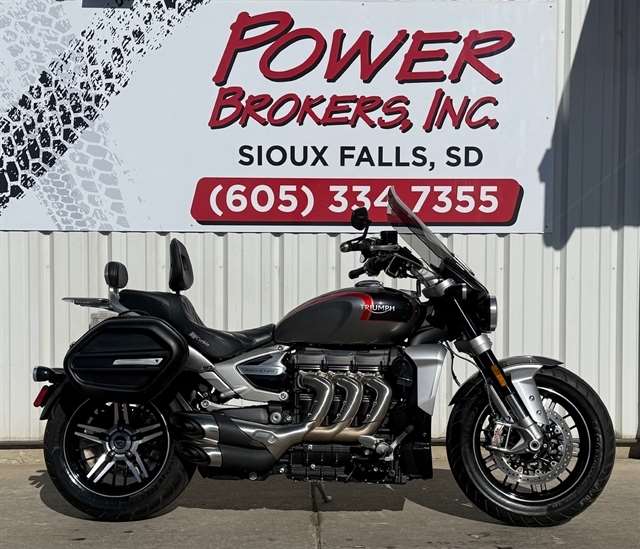 The Triumph Rocket 3 GT is a striking blend of brute force and refined long-distance capability, built around one of the largest production motorcycle engines in the world — a 2,458 cc liquid-cooled inline-three that churns out 165 hp...This one has the added touring windscreen , Triumph factory Bags and a Corbin seat.....With only 5,263 miles its priced at $14,495.00