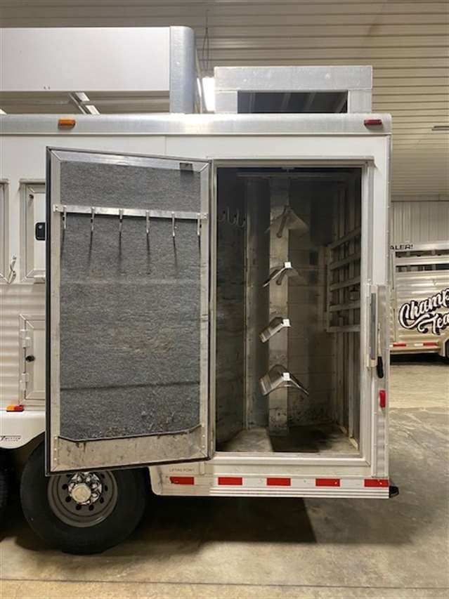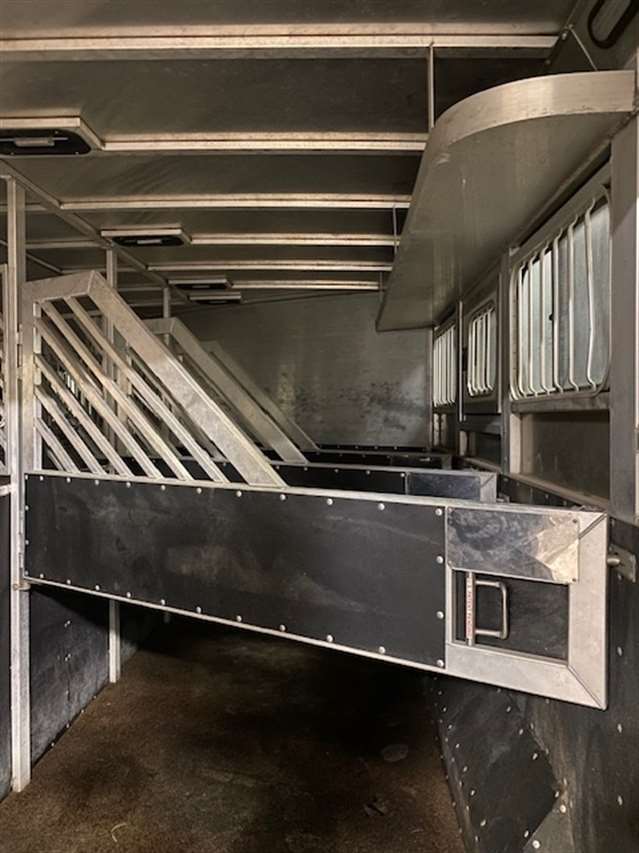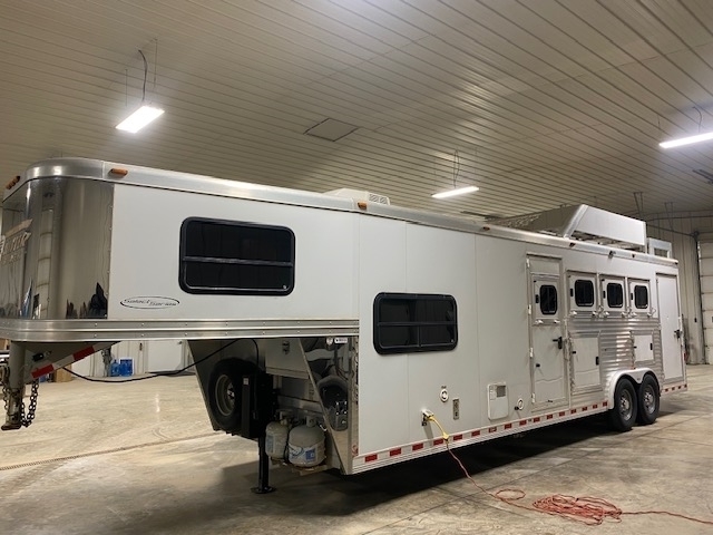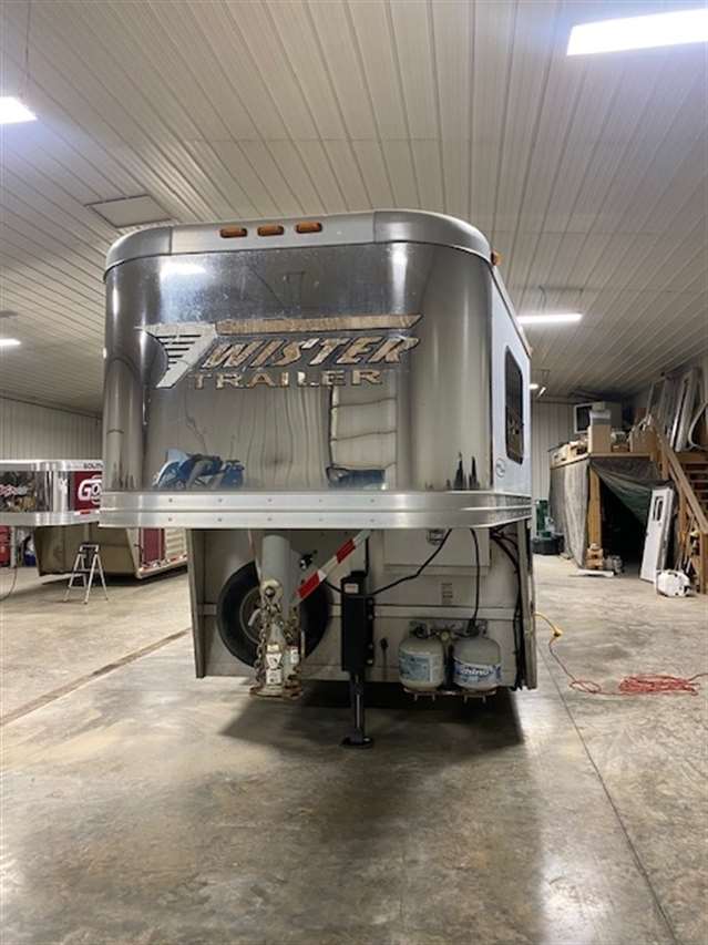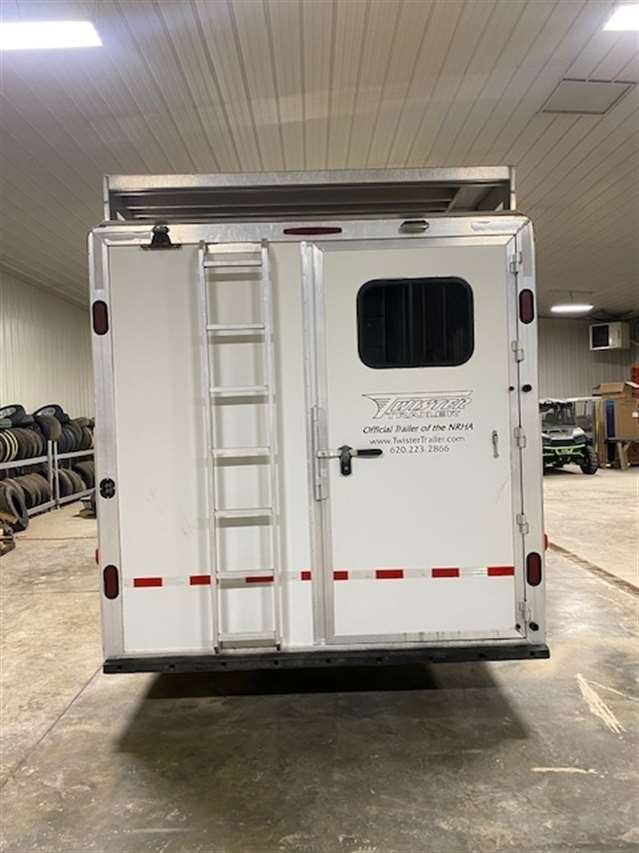 2013 Twister 4 Horse Living Quarters. 9'.6" Short wall Living Quarters with full bathroom and shower, A/C and Furnace. Couch that makes into a bed and a bunkbed above couch. refrigerator and freezer, Microwave, TV, Generator ready. Horse area has Stall dividers, Easy care flooring, Drop down feed doors and managers, Side Tack and Hay rack. Hydraulic jack. Just completely serviced in our shop.