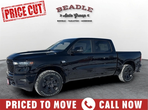 Come see this 2026 RAM 1500 Big Horn Night Edition Crew Cab 4x4 at Beadle Chrysler Center in Bowdle, South Dakota. We serve customers from Aberdeen, SD, Bismarck, ND, and Pierre, SD — all within two hours. Call us at 605-285-6202 or visit beadleautogroup.com to schedule your test drive!