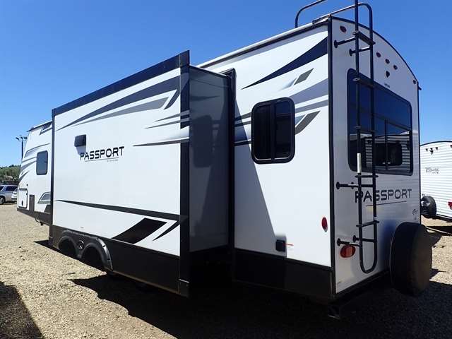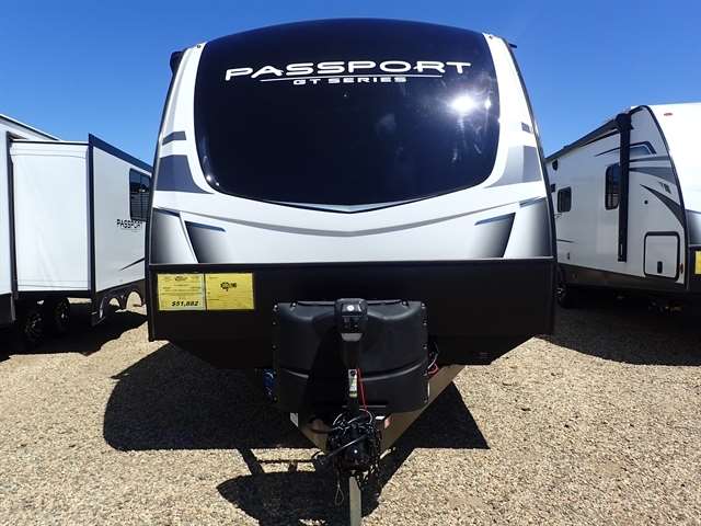 The Passport GT Series travel trailers by Keystone RV are lightweight and towable behind many SUVs and half-ton trucks. Each model comes with load equalization axles that reduce sway for an easy tow, and the unit has an enclosed and heated underbelly for four seasons of traveling. Once at your destination, you can walk up the MORryde Step Above entry steps and grab onto the fold-away exterior grab handle by the main door for support. The Passport now contains a HyperDeck flooring system which is a high-performance, water-resistant RV floor that comes as a breakthrough design from the Keystone Innovation Lab. This flooring is more resilient, stronger, and lighter than traditional laminated wood construction. The vaulted ceiling is a unique feature to the GT Series, and all units now have four electric stabilizer jacks to keep your trailer secured in place. Choose your favorite Passport GT Series today and start going everywhere!