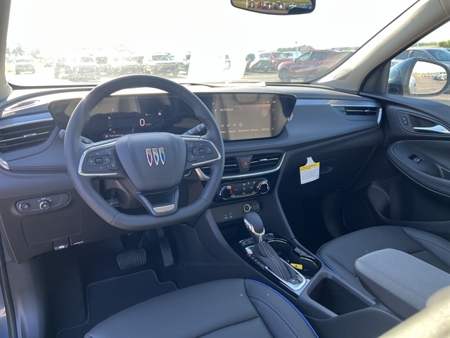 Comfort Package (2-Way Power Driver Lumbar Control, 8-Way Power Driver Seat Adjuster, Flat-Folding Front Passenger Seatback, Heated Driver & Front Passenger Seats, Heated Steering Wheel, and Rear Center Armrest), 3.17 Final Drive Axle Ratio, 4-Way Manual Passenger Seat Adjuster, 4-Wheel Disc Brakes, 6-Way Manual Driver Seat Adjuster, 7 Speakers, ABS brakes, Air Conditioning, Alloy wheels, AM/FM radio: SiriusXM, Auto High-beam Headlights, Automatic temperature control, Brake assist, Bumpers: body-color, Compass, Delay-off headlights, Driver door bin, Driver vanity mirror, Dual front impact airbags, Dual front side impact airbags, Electronic Stability Control, Emergency communication system: OnStar and Buick connected services capable, Enhanced Performance 7-Speaker System w/Amplifier, Front anti-roll bar, Front Bucket Seats, Front Center Armrest, Front reading lights, Front wheel independent suspension, Fully automatic headlights, Heated door mirrors, Illuminated entry, Knee airbag, Leatherette Seat Trim, Low tire pressure warning, Occupant sensing airbag, Outside temperature display, Overhead airbag, Overhead console, Panic alarm, Passenger door bin, Passenger vanity mirror, Power door mirrors, Power steering, Power windows, Radio data system, Radio: AM/FM Audio System, Rear reading lights, Rear side impact airbag, Rear window defroster, Rear window wiper, Remote keyless entry, Ride & Handling Suspension, Security system, SiriusXM Trial Subscription, Speed control, Speed-sensing steering, Split folding rear seat, Spoiler, Sport steering wheel, Steering wheel mounted audio controls, Tachometer, Telescoping steering wheel, Tilt steering wheel, Traction control, Trip computer, Variably intermittent wipers, Wheels: 18`` Gloss Black Aluminum, and Wireless Apple CarPlay/Wireless Android Auto.