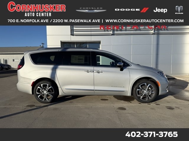 The *2026 Chrysler Pacifica* in elegant *Silver Mist Clear-Coat* offers a spacious, versatile, and comfortable ride built for families, daily life, and everything in between. Powered by a *3.6 L V6 engine* paired with a smooth *9-speed automatic transmission* and equipped with *AWD*, this Pacifica delivers dependable performance whether you're commuting, running errands, or heading out on a long drive. With an EPA-estimated *25 MPG highway / 17 MPG city*, it balances power and efficiency for a minivan that does it all. Inside, the *Black and Sepia interior* provides a roomy, well-appointed cabin for passengers and cargo --- perfect for carpool, road trips, or hauling gear. With thoughtful engineering, flexible space, and the reliability you expect from Chrysler, this 2026 Pacifica is a standout choice for anyone who values comfort, versatility, and everyday practicality.Drive over to *Cornhusker Auto Center* at *700 E Norfolk Ave, Norfolk, NE 68701* to see this 2026 Chrysler Pacifica in person --- a smart, family-ready vehicle designed for real life.