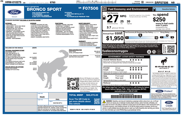 (SOLD) 2025 FORD BRONCO SPORT Outer Banks