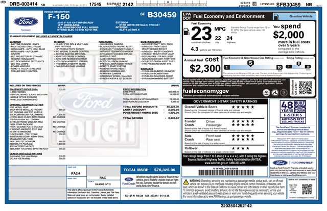 - Model/Trim: F-150 LARIAT with Equipment Group 502A