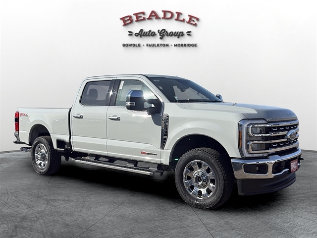 Stop by Beadle Ford & Chrysler Center in Bowdle, SD to test drive this powerful 2025 Ford F-350 Lariat Crew Cab 4x4. Call 605-285-6202 to schedule your appointment. We proudly serve drivers from Aberdeen, SD, Bismarck, ND, and Pierre, SD — all within two hours or less. Discover the next level of Super Duty strength and luxury at Beadle Ford & Chrysler Center.