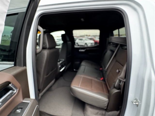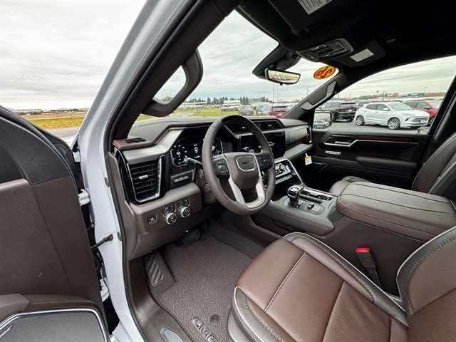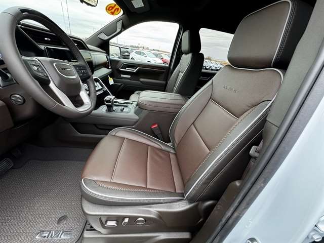 Technology Package (Multicolor 15`` Diagonal Head-Up Display and Rear Camera Mirror), Trailering Package (Hitch Guidance), 10-Speed Automatic, 4WD, Atmosphere/Brownstone Leather, 12-Way Power Driver Seat Adjuster w/Lumbar, 12-Way Power Passenger Seat Adjuster w/Lumbar, 120-Volt Bed Mounted Power Outlet, 120-Volt Interior Power Outlet, 170 Amp Alternator, 2 Charge/Data USB Ports Inside Center Console, 2 Type-C Charge-Only Rear USB Ports, 2 USB Ports, 3.23 Rear Axle Ratio, 4-Wheel Disc Brakes, 7 Speakers, ABS brakes, Adaptive suspension, Air Conditioning, Alloy wheels, AM/FM radio: SiriusXM with 360L, Apple CarPlay/Android Auto, Auto High-beam Headlights, Auto-dimming door mirrors, Auto-dimming Rear-View mirror, Auto-Locking Rear Differential, Automatic temperature control, Auxiliary External Transmission Oil Cooler, Bed View Camera, Brake assist, Buckle to Drive, Bumpers: body-color, Chrome Header w/Signature Denali Chrome Grille, Chrome Recovery Hooks, Chrome Wheel To Wheel Assist Steps, Color-Keyed Carpeting Floor Covering, Compass, Deep-Tinted Glass, Delay-off headlights, Denali Premium Suspension w/Adaptive Ride Control, Driver door bin, Driver Memory, Driver vanity mirror, Dual Active Exhaust, Dual front impact airbags, Dual front side impact airbags, Electric Rear-Window Defogger, Electronic Stability Control, Emergency communication system: OnStar, Enhanced Automatic Emergency Braking, Floor-Mounted Center Console, Following Distance Indicator, Forge Perforated Leather Seat Trim, Forward Collision Alert, Front anti-roll bar, Front Bucket Seats, Front Center Armrest, Front dual zone A/C, Front fog lights, Front Pedestrian Braking, Front Rain-Sensing Wipers, Front reading lights, Front wheel independent suspension, Fully automatic headlights, Garage door transmitter, Genuine wood console insert, Genuine wood dashboard insert, Genuine wood door panel insert, HD Surround Vision, Heated 2nd Row Outboard Seats, Heated door mirrors, Heated Driver & Front Outboard Passenger Seating, Heated front seats, Heated rear seats, Heated steering wheel, Heavy-Duty Air Filter, Hill Descent Control, Hitch View, Illuminated entry, In-Vehicle Trailering System App, Integrated Trailer Brake Controller, IntelliBeam Automatic High Beam On/Off, Keyless Open & Start, Lane Keep Assist w/Lane Departure Warning, LED Cargo Area Lighting, Low tire pressure warning, Memory seat, Navigation System, Occupant sensing airbag, OnStar Services Capable, Outside temperature display, Overhead airbag, Overhead console, Panic alarm, Passenger door bin, Passenger vanity mirror, Perimeter Lighting, Power Door Locks, Power door mirrors, Power driver seat, Power Front Passenger Windows w/Express Up/Down, Power Front Windows w/Driver Express Up/Down, Power passenger seat, Power Rake & Telescoping Steering Column, Power Rear Windows w/Express Down, Power Sliding Rear Window w/Rear Defogger, Power steering, Power windows, Premium Bose 7-Speaker Sound System, Push Button Start, Radio data system, Radio: Premium GMC Infotainment Audio System, Rain sensing wipers, Rear Cross Traffic Braking, Rear Pedestrian Detection, Rear reading lights, Rear seat center armrest, Rear step bumper, Rear Wheelhouse Liners, Rear window defroster, Remote keyless entry, Remote Vehicle Starter System, Safety Alert Seat, Security system, SiriusXM w/360L Trial Subscription, Speed control, Speed-sensing steering, Split folding rear seat, Spray-On Pickup Bedliner w/GMC Logo, Steering Wheel Audio Controls, Steering wheel mounted audio controls, Super Cruise, Tachometer, Telescoping steering wheel, Theft Deterrent System (Unauthorized Entry), Tilt steering wheel, Traction control, Trailer Camera Provisions, Trailer Side Blind Zone Alert, Trip computer, Ultr