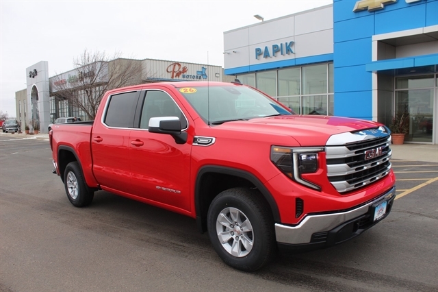 Cardinal Red 2026 GMC Sierra 1500 SLE 4WD 8-Speed Automatic 2.7L I4 Turbocharged DOHC 16V LEV3-SULEV30 310hp 8-Speed Automatic, 4WD, Jet Black Cloth.