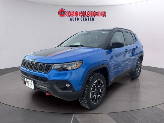 Scores *31 Highway MPG* and *23 City MPG*! This New *2026 Jeep Compass 4*4* features a spirited *2.0L Intercooled Turbo I-4 engine* paired with a smooth *automatic transmission*, delivering a fun yet efficient driving experience. The exterior shines in *Hydro Blue Pearlcoat*, while the interior offers a striking *Ruby Red and Black* combination that gives the cabin a sporty and premium feel. With its 4WD capability, this Compass is ready for whatever adventure comes your way --- whether you're navigating city streets or hitting back roads. Stop by today --- you'll want to see this must-own Jeep for yourself --- at *Cornhusker Auto Center, 700 E Norfolk Ave, Norfolk, NE 68701*, your trusted local Chrysler, Jeep, Dodge & Ram dealership.
