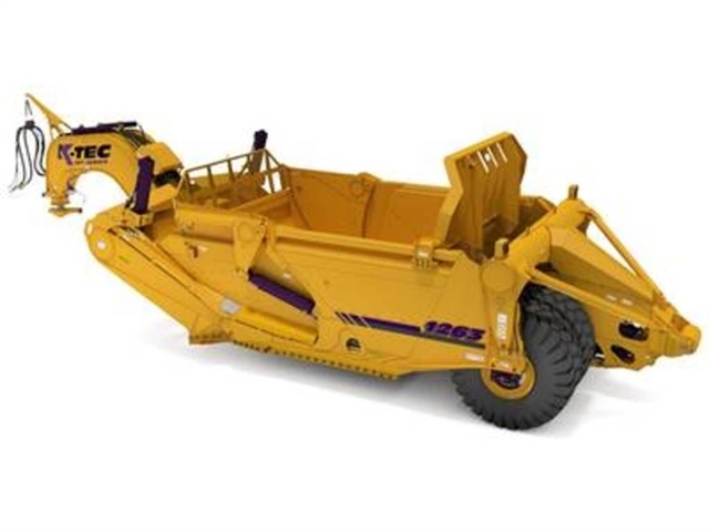 The K-Tec 1263 ADT is the world’s largest dirt moving scraper. It is designed for push-loading, while being pulled with a 40-ton, 450+ horsepower rock truck power unit. The 1263 ADT has a bolt-together design which enables overseas shipping and ease of maintenance.- Grease-less bushings and only 7 grease points