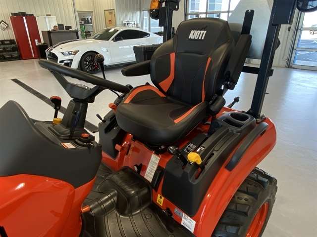 0% / 48 Month Financing or Get 1.99% Financing for 72 Months - 20 Series models offer additional comfort and convenience features: tilt steering wheel, loader joystick on the fender, cruise control, metal floorboard with rubber mat, and phone charger. Power and Performance - Fuel-efficient KIOTI 3-cylinder diesel engine with smooth-shifting hydrostatic transmission for optimal control. Standard differential lock ensures traction, while rear and mid PTOs and a category I 3-point hitch lets you attach a variety of implements with ease. Hydrostatic Transmission - Infinite 2-range hydrostatic transmission for effortless control, twin pedals for intuitive forward and reverse movements, seamlessly adjusting speed without ever touching a clutch. Foldable ROPS (ROPS Models) - The standard fold-down roll bar allows you to move into low clearance areas quickly and easily. Mid PTO - The standard mid PTO (2,200 rpm) allows you to use implements such as a mid-mount mower. Ergonomic Operator Station - The ergonomically designed workstation places operator controls within easy reach for maximum comfort. Streamlined Hood Design - The hood design provides the operator with excellent visibility and the vertical opening enables quick and convenient access for maintenance. Headlights - 55W lamps are the brightest in this tractor's class. Control Levers - The HST with HI-LO range lever allows the tractor to handle a wide range of load tasks. The rear PTO and mid PTO can be controlled separately or together using a simple in-line shifting lever. The height adjustment lever enables the operator to easily control the cutting height of the mid-mount mower. Four Wheel Drive - Enables easy forward and reverse movement, with smooth acceleration and deceleration. The dual pedals simplify operation, reducing operator fatigue during long hours of work and repetitive tasks. Twin HST Pedals - Twin HST pedals offer easy forward and reverse movement with smooth engagement, acceleration and deceleration. Pedal pressure is minimized which reduces operator fatigue during long hours of use. Illuminated Dashboard - The dashboard illuminates when the engine is started. The digital gauge package includes tachometer, fuel and temperature gauges along with a low fuel warning lamp.