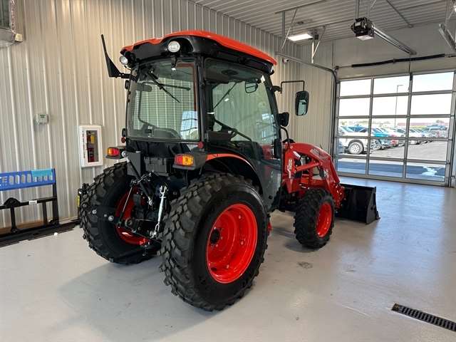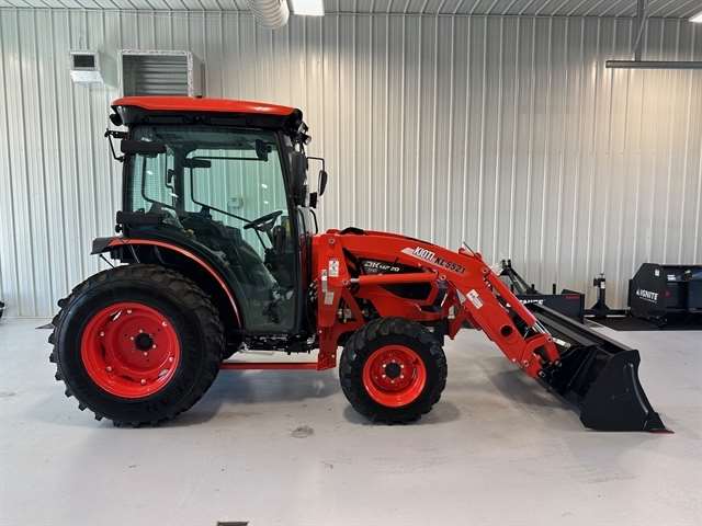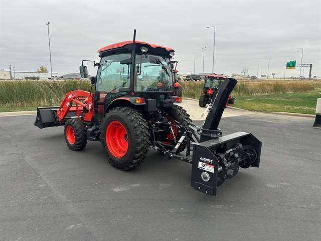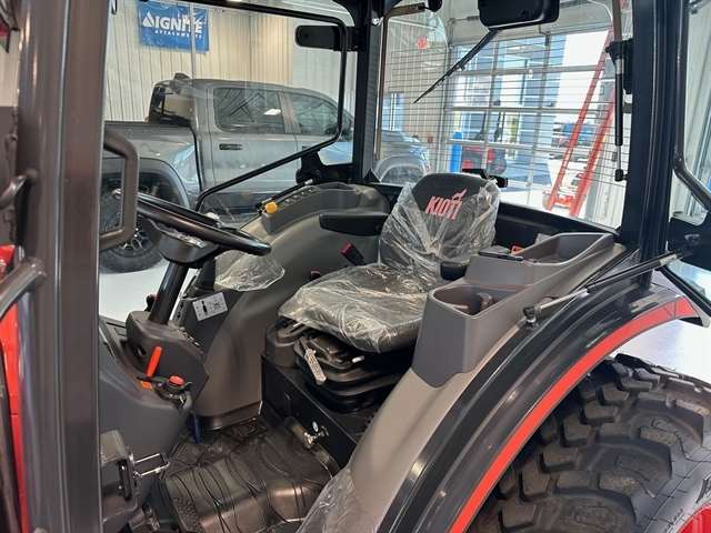 OPTIONS - KL5521 LOADER /w 72"QA HYV DUTY BUCKET & GRILL, R14 TIRES, BLUETOOTH PLAYER, BLOCK HEATER, 72" CUTTING EDGE, FINGER RPM KIT, HST LINKED PEDAL KIT, REAR VIEW MIRROR, AC/HEAT, CRUISE. Designed for those who demand premier performance in a compact tractor. KIOTI's most powerful compact tractors conquer the toughest terrain and tasks with ease, while remaining nimble to navigate tight spaces. Convenience Features - A deluxe suspension seat, PTO cruise, high ground clearance, power steering, tilt steering wheel, center marker, projection light for better night vision, and a one piece engine panel to check service points with ease. Safety - Wet disc brakes, a sturdy ROPS or Cab, and a secure seatbelt keep you safe. Headlights, safety lights, and a rear work light lets you see attachments and drawbars clearly, even in low-light conditions. Rugged Performance - Dependable, liquid-cooled KIOTI 3-cylinder diesel engine hums with fuel efficiency, ready to take on demanding jobs all day long. Engage the rear differential lock for unflinching traction, then command implements with the push-button hydraulic PTO.