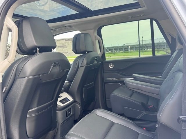 Inside the Black Onyx leather interior, every inch is crafted with precision and elegance. The heated and ventilated premium captains chairs, tri-zone automatic climate control, and Panoramic Vista Roof create a serene, first-class environment. With reclining third-row seating and generous cargo room, every journeywhether across town or across the Midwestfeels effortless. Lincolns acoustic insulation and adaptive ambient lighting enhance every mile with tranquility and sophistication.