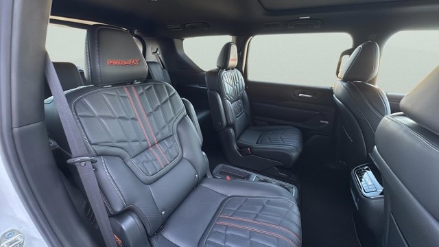[K01] PRO-4X PREMIUM PACKAGE W/CAPTAIN'S CHAIR -inc: Homelink UGDO In-Car Camera Intelligent Rear View Mirror (I-RVM) autodimming Intelligent Dash Cam Panoramic Moonroof Heated 2nd Row Seats Biometric Cooling Hands-Free Power Liftgate Climate Controlled Heated & Ventilated Front Seats 12-way power front seats w/4-way power lumbar |