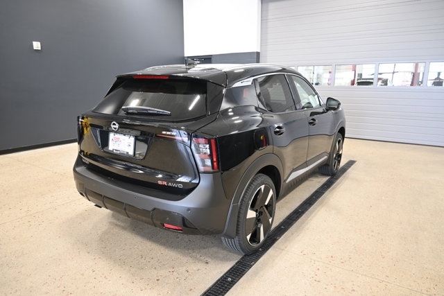 The *2025 Nissan Kicks SR AWD* in sleek *Super Black* features a sporty interior and an efficient 2.0L I-4 engine paired with a smooth CVT transmission. This compact sport utility offers an EPA-estimated *27 MPG city* and *34 MPG highway*, perfect for both city drives and weekend getaways. Equipped with all-wheel drive for confident handling, the Kicks SR includes sport leatherette seating, a 12.3-inch digital display, premium audio, and advanced safety features like Blind Spot Monitoring, Rear Cross Traffic Alert, Lane Departure Warning, and an Intelligent Around View® Monitor to make parking easier. Visit Cornhusker Nissan at 2125 Krenzien Dr., Norfolk, NE 68701 to see the 2025 Nissan Kicks SR AWD today.