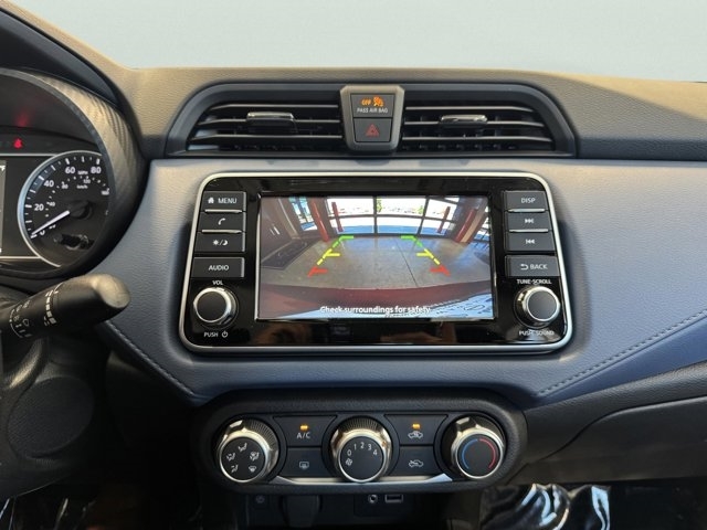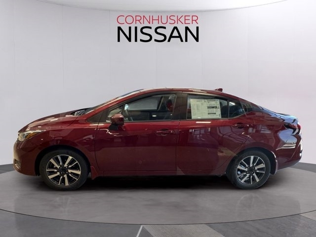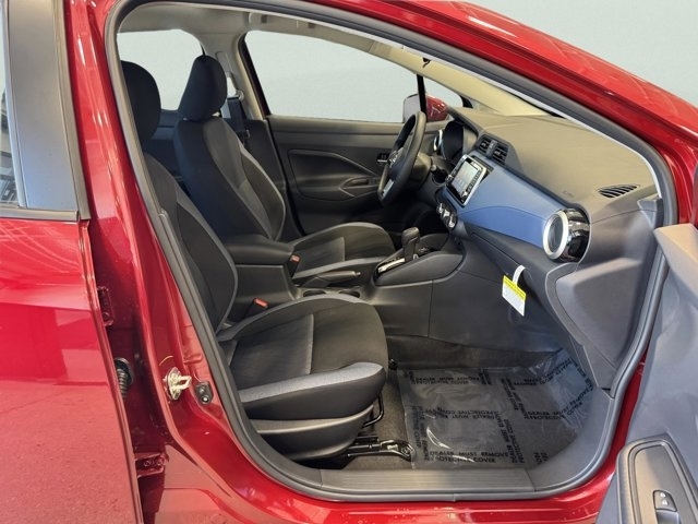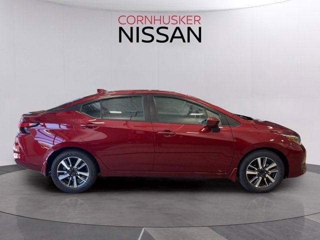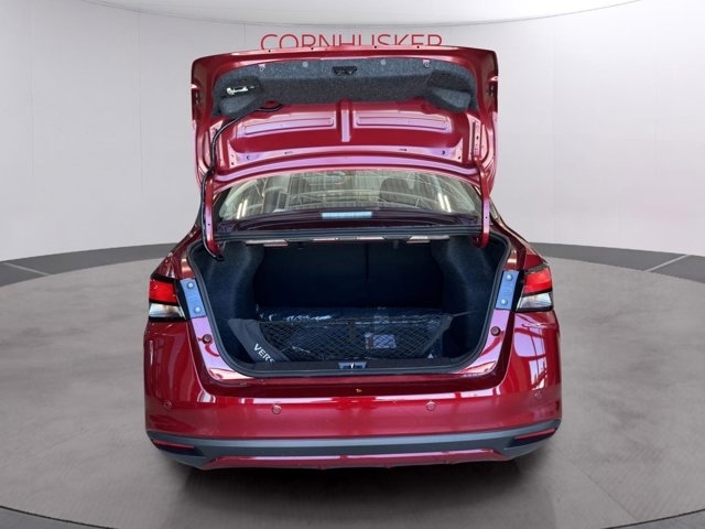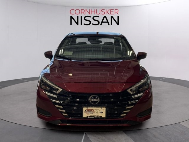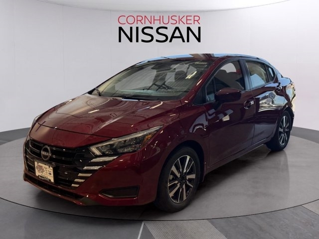 The 2025 Nissan Versa in Scarlet Ember Tintcoat with a Graphite interior is a compact sedan that delivers impressive fuel efficiency and modern features. Powered by a 1.6L 4-cylinder engine paired with a Continuously Variable Transmission (CVT), it achieves an EPA-estimated 32 MPG in the city and 40 MPG on the highway. This front-wheel-drive vehicle offers a comfortable ride with seating for up to five passengers and a spacious trunk for cargo. Standard safety features include Automatic Emergency Braking, Blind Spot Warning, and Rear Automatic Braking, contributing to a safer driving experience.For more information or to schedule a test drive, visit Cornhusker Nissan of Norfolk at 2125 Krenzien Dr, Norfolk, NE 68701.