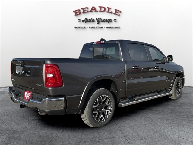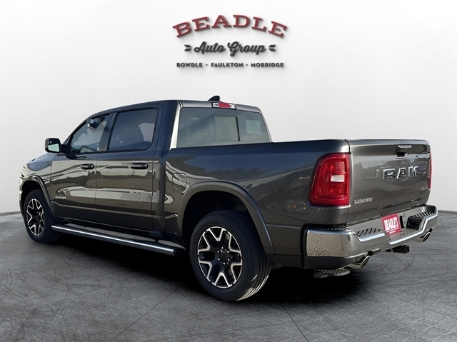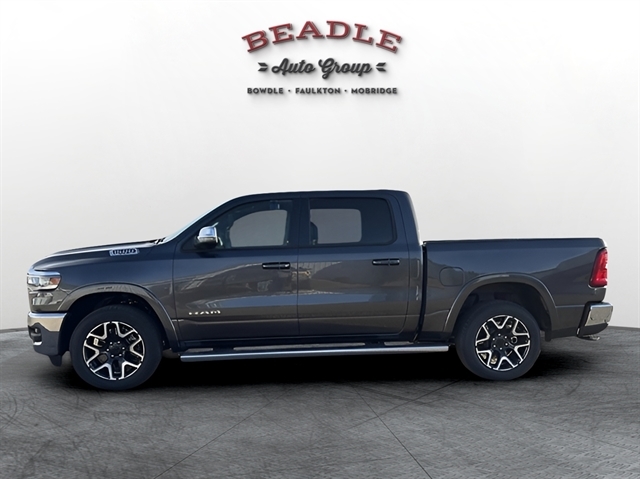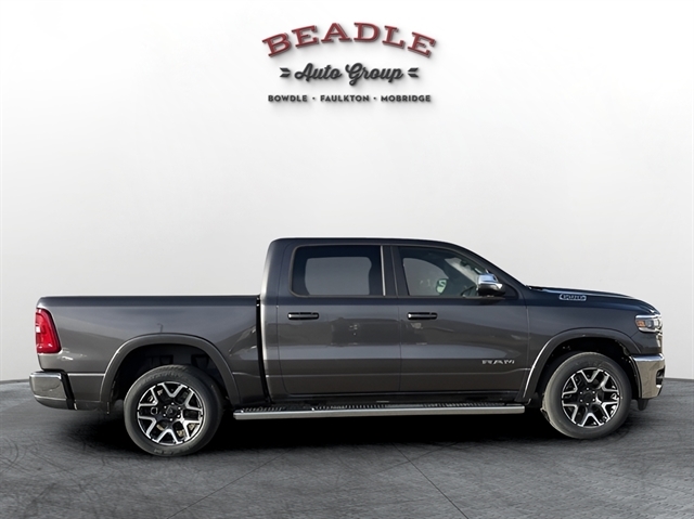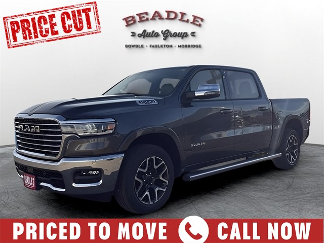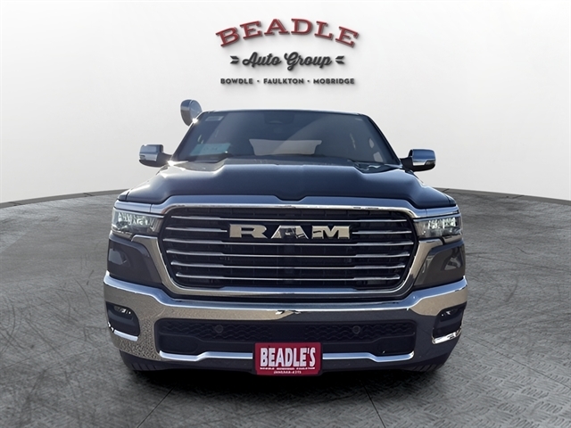 Visit Beadle Ford & Chrysler Center in Bowdle, SD to test drive this 2025 RAM 1500 Laramie Crew Cab 4x4. Call us at 605-285-6202 to schedule your visit. We proudly serve drivers from Aberdeen, SD, Bismarck, ND, and Pierre, SD — all less than two hours away. Experience premium power and craftsmanship at Beadle Ford & Chrysler Center today.
