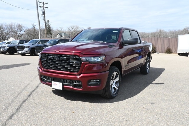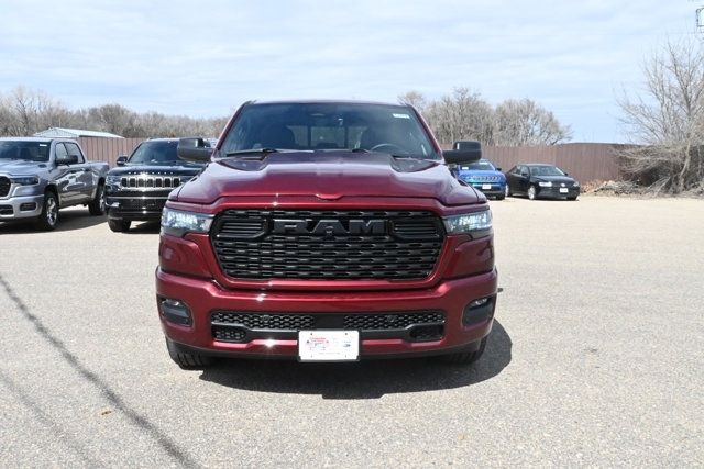 The 2025 Ram 1500 Tradesman Crew Cab 4X4 combines rugged capability with modern comfort. Powered by a 3.0L I6 Hurricane SO Twin Turbo engine with Stop/Start technology, it offers a great balance of power and fuel efficiency, achieving an EPA-estimated 17 MPG city and 24 MPG highway. This model features an 8-speed automatic transmission, 20-inch polished aluminum wheels, and a Class IV receiver hitch, perfect for towing and heavy-duty tasks. Inside, enjoy a black cloth bench seat, Uconnect® 5 with an 8.4-inch touchscreen, hands-free phone and audio, and a 4G LTE Wi-Fi® hotspot. Safety features include Adaptive Cruise Control with Stop and Go, Full-Speed Forward-Collision Warning Plus, Blind-Spot and Cross-Path Detection, ParkSense® Front and Rear Park-Assist, and Pedestrian Emergency Braking. Finished in striking Delmonico Red Pearl-Coat, this Ram 1500 also comes with the Tradesman Level 1 Equipment Group, Sport Appearance Package, and Trailer Brake Controller. With an MSRP of $55,195 including destination charge and strong warranty coverage, the 2025 Ram 1500 Tradesman Crew Cab 4X4 is ready to handle any challenge. Visit Cornhusker Auto Center at 700 E Norfolk Ave, Norfolk, NE 68701 today to see it for yourself!
