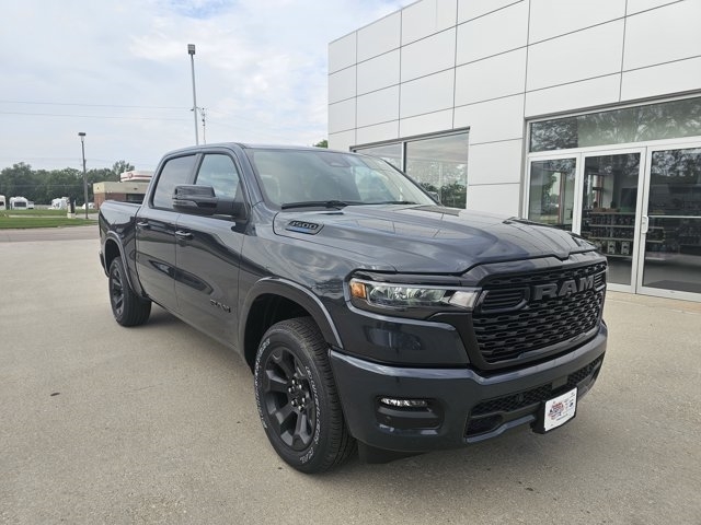 The 2025 RAM 1500 Big Horn Crew Cab 4*4 5'7" Box is a versatile and well-equipped pickup truck designed to deliver both performance and comfort. Powered by the 3.6L V6 24V VVT eTorque engine with Stop/Start technology, paired with an 8-speed automatic 850RE transmission, it offers a balance of power and efficiency. The exterior is finished in Forged Blue Metallic, complemented by 20-inch x 9.0-inch aluminum painted clad wheels wrapped in 275/55R20 OWL all-season tires. Inside, the cabin features black deluxe cloth bucket seats, a Uconnect® 5 Nav system with a 12.0-inch touchscreen display, and a 7.0-inch TFT color cluster. The Big Horn Level 2 Equipment Group enhances comfort with heated front seats, an 8-way power adjustable driver seat with 2-way power lumbar, dual-zone automatic temperature control, and a leather-wrapped steering wheel. Safety features include adaptive cruise control with stop and go, blind-spot and cross-path detection, ParkSense® front and rear park-assist, and ParkView® rear back-up camera. Additional amenities comprise a 400W inverter, power adjustable pedals, and a power tailgate-release. With a total MSRP of *$59,455*, including destination charge, this RAM 1500 Big Horn offers a well-rounded package for those seeking both capability and comfort. Visit Cornhusker Auto Center at *700 E Norfolk Ave, Norfolk, NE 68701* to see it in person.