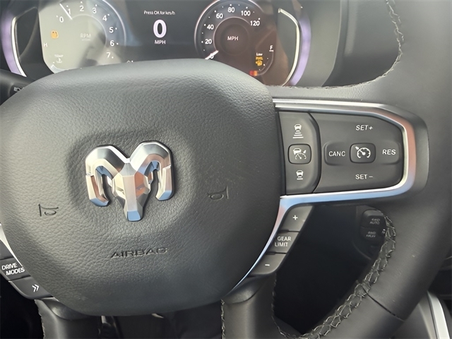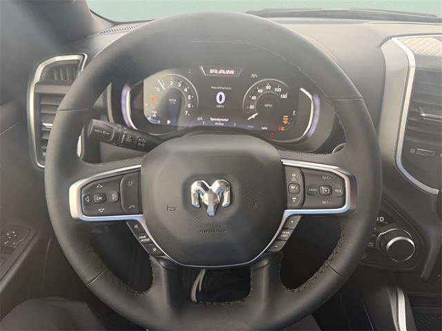Diamond Black Crystal Pearlcoat Big Horn/Lone Star HEMI 5.7L V8 Multi Displacement VVT eTorque 1500 Big Horn/Lone Star, HEMI 5.7L V8 Multi Displacement VVT eTorque, 4WD, Diamond Black Crystal Pearlcoat, 12`` Touchscreen Display, 4G LTE Wi-Fi Hot Spot, 9 Amplified Speakers w/Subwoofer, Air Conditioning ATC w/Dual Zone Control, Apple CarPlay, Auto Power-Folding Mirrors, Auto-Dimming Exterior Driver Mirror, Auto-Dimming Rear-View Mirror, Big Horn Level 2 Equipment Group, Black Exterior Mirrors, Black Premium Power Mirrors, Body Color Fender Flares, Bucket Seats, Center Console Parts Module, Cluster 7.0`` TFT Color Display, Configurable Drive Mode, Connected Travel & Traffic Services, Connectivity - US/Canada, Convex Wide-Angle Exterior Mirror Insert, Deluxe Cloth Bucket Seats, Disassociated Touchscreen Display, Exterior Mirrors Courtesy Lamps, Exterior Mirrors w/Heating Element, Exterior Mirrors w/Supplemental Signals, Front Seat Back Map Pockets, Full Length Floor Console, Global Telematics Box Module (TBM), Glove Box Lamp, Google Android Auto, GPS Antenna Input, GPS Navigation, HD Radio, Heated Front Seats, Heated Steering Wheel, Integrated Center Stack Radio, Integrated Voice Command w/Bluetooth, Leather Wrapped Steering Wheel, LED Dome Lamp w/On/Off Switch, LED Footwell Lighting, Manual Adjust 4-Way Front Passenger Seat, Media Hub w/2 Charge Only USBs, Overhead LED Lamps, Power 2-Way Driver Lumbar Adjust, Power Adjust 8-Way Driver Seat, Power Adjustable Pedals, Premium Overhead Console, Radio: Uconnect 5 Nav w/12.0`` Display, Rear 60/40 Folding Seat, Rear Center Armrest, Rear Power Sliding Window, Rear Window Defroster, Remote Tailgate Release, Secondary Active Grille Shutters, Security Alarm, SiriusXM Radio Service, SiriusXM w/360L, Steering Wheel Mounted Audio Controls, Sun Visors w/Illuminated Vanity Mirrors, Universal Garage Door Opener, USB Host Flip, Wheels: 20`` x 9`` Aluminum Chrome Clad (WRK), Wireless Charging Pad.