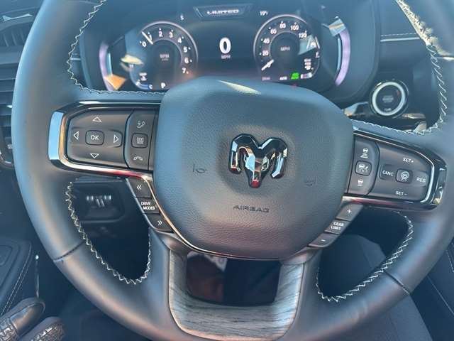 Keep your hands warm all winter with a heated steering wheel in it . Never get into a cold vehicle again with the remote start feature on it. This Ram 1500's Forward Collision Warning system alerts the driver to potential front-end collisions, enhancing safety. Bluetooth technology is built into this 1/2 ton pickup, keeping your hands on the steering wheel and your focus on the road. The leather seats in this Ram 1500 are a must for buyers looking for comfort, durability, and style. Protect the Ram 1500 from unwanted accidents with a cutting edge backup camera system. The Ram 1500 offers Android Auto for seamless smartphone integration. This vehicle offers Apple CarPlay for seamless connectivity. The installed navigation system will keep you on the right path. This 1/2 ton pickup has automated speed control that adjusts to maintain a safe following distance, enhancing highway driving convenience. Maintaining a stable interior temperature in this 1/2 ton pickup is easy with the climate control system.