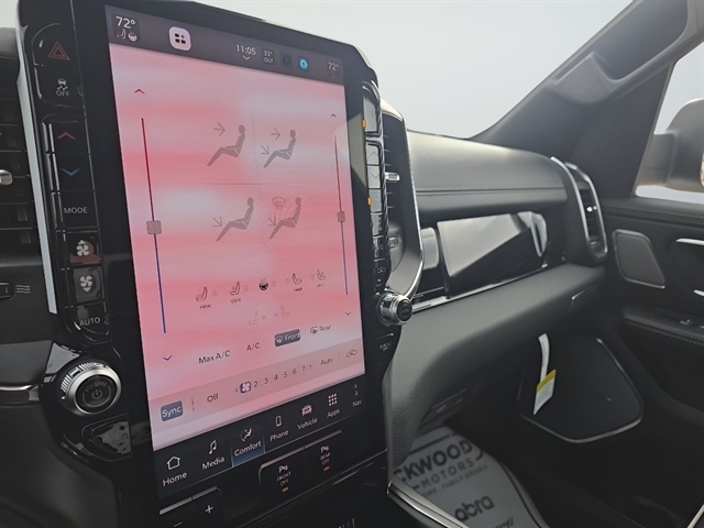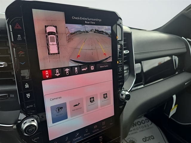 Advanced Safety Group II: Exterior Mirrors Approach Lamps; Active Driving Assist System; Surround View Camera System; Evasive Steer Assist; Drowsy Driver Detection; Intersection Collision Assist System; Traffic Sign Recognition; 12-Way/1-way Trailer Connector. Quick Order Package 27H Laramie. Laramie Level 2 Equipment Group: SiriusXM Radio Service; USB Host Flip; Rain Sensitive Windshield Wipers; 14.4" Touchscreen Display; Integrated Center Stack Radio; Front Passenger Interactive Display; Integrated Voice Command with Bluetooth; Connectivity - US/Canada; Uconnect 5 Nav with 14.4" Display; GPS Navigation; 4G LTE Wi-Fi Hot Spot; Harman/kardon 19 Speaker Premium Sound; SiriusXM with 360L; Connected Travel and Traffic Services; Cluster 12" TFT Color Display; Power Tailgate. Bed Utility Group: MOPAR Spray in Bedliner; MOPAR Deployable Bed Step; MOPAR 4 Adjustable Cargo Tie-Down Hooks; Exterior 115V AC Outlet. Protection Group: Steering Gear Skid Plate; Tow Hooks; Transfer Case Skid Plate; Fuel Tank Skid Plate. Wheel to Wheel Side Steps. Anti-Spin Differential Rear Axle. 33 Gallon Fuel Tank. Trailer Brake Control. MyFlexCare Service Plan. MOPAR Front and Rear Rubber Floor Mats. 3.92 Rear Axle Ratio. Rear Wheelhouse Liners. **Equipment listed is based on original vehicle build and subject to change. Please confirm the accuracy of the included equipment by calling the dealer prior to purchase.**