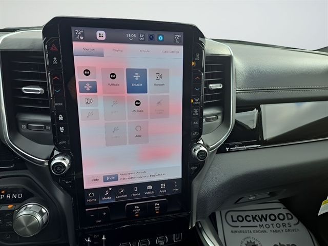 | Laramie Level 2 Equipment Group: SiriusXM Radio Service; USB Host Flip; Rain Sensitive Windshield Wipers; 14.4" Touchscreen Display; Integrated Center Stack Radio; Front Passenger Interactive Display; Integrated Voice Command with Bluetooth; Connectivity - US/Canada; Uconnect 5 Nav with 14.4" Display; GPS Navigation; 4G LTE Wi-Fi Hot Spot; Harman/kardon 19 Speaker Premium Sound; SiriusXM with 360L; Connected Travel and Traffic Services; Cluster 12" TFT Color Display; Power Tailgate | Bed Utility Group: MOPAR Spray in Bedliner; MOPAR Deployable Bed Step; MOPAR 4 Adjustable Cargo Tie-Down Hooks; Exterior 115V AC Outlet |