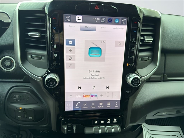 | Visit DriveUconnect.com; For More Info | Call 800-643-2112; Integrated Voice Command with Bluetooth; Emergency Vehicle Alert System (EVAS); 12" Touchscreen Display; Premium Cloth 40/20/40 Bench Seat; Glove Box Lamp; Auto Power-Folding Mirrors; Footwell Courtesy Lamp; Anti-Spin Differential Rear Axle; Mirror Running Lights; MOPAR Deployable Bed Step; Alexa Built-In; Apple CarPlay; Power-Adjustable Convex Aux Mirrors; Forward and Reverse Utility Lights; Locking Lower Glove Box; Remote Start System; 9 Alpine Speakers with Subwoofer; Disassociated Touchscreen Display; Dual Glove Boxes; 2nd Row in Floor Storage Bins; Rear View Auto Dim Mirror; Rear Dome with On/off Switch Lamp; LED Bed Lighting; Connectivity - US/Canada; GPS Navigation; 4G LTE Wi-Fi Hot Spot; GPS Antenna Input; Exterior Mirrors with Heating Element; SiriusXM with 360L; Global Telematics Box Module; Connected Travel and Traffic Services; Foam Bottle Insert (door Trim Panel); Black Exterior Mirrors; Big Horn Instrument Panel Badge; Off-Road Info Pages; Selectable Tire Fill Alert; Trailer Tow Pages; HD Radio; Uconnect 5 Navigation with 12.0" Display Radio; Power Heated Folding Telescopic Mirrors; Exterior Mirrors with Supplemental Signals; Steering Wheel Mounted Audio Controls; Exterior Mirrors Courtesy Lamps; Air Conditioning ATC with Dual Zone Control; MOPAR Spray in Bedliner; Power Adjust Mirrors; Luxury Steering Wheel; Power Telescoping Mirrors |